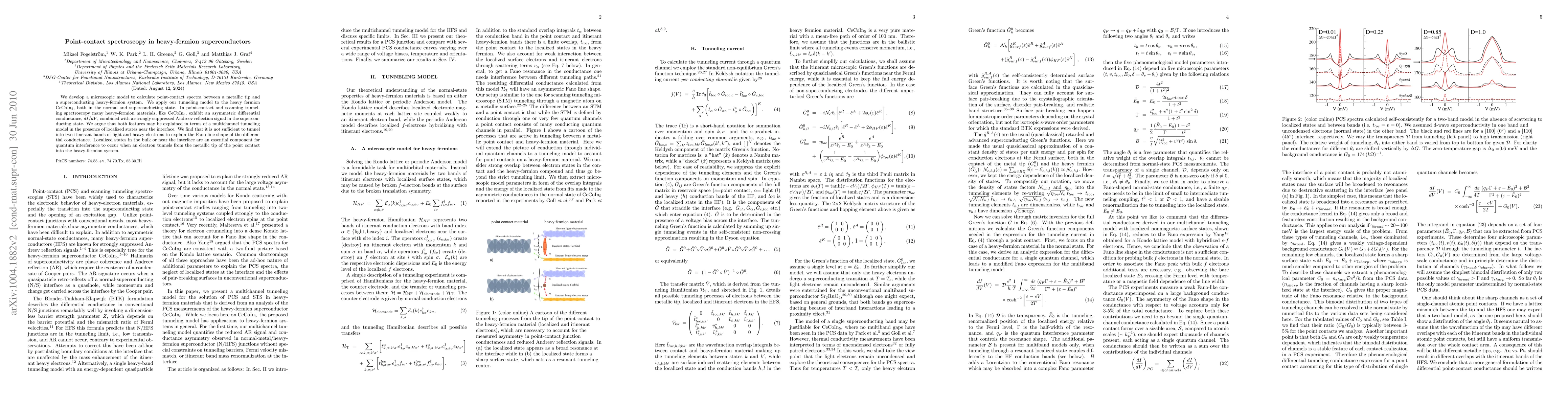 This paper develops a tunneling model to explain the point-contact spectra in heavy-fermion superconductors, specifically CeCoIn5, highlighting the role of localized states near the interface in producing asymmetric differential conductance and suppressed Andreev reflection signals. The study finds that quantum interference requires tunneling into localized states, not just itinerant bands.