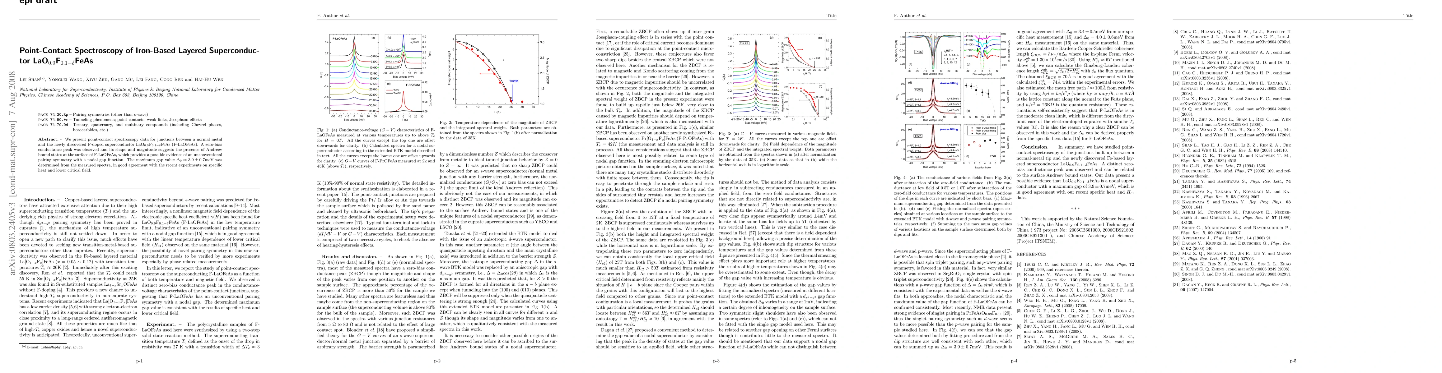 Researchers used point-contact spectroscopy to study LaO$_{0.9}$F$_{0.1- heta}$FeAs, a newly discovered iron-based superconductor. They found evidence of Andreev bound states, suggesting an unconventional pairing symmetry with a nodal gap function and a maximum gap value of approximately 3.9 meV.
