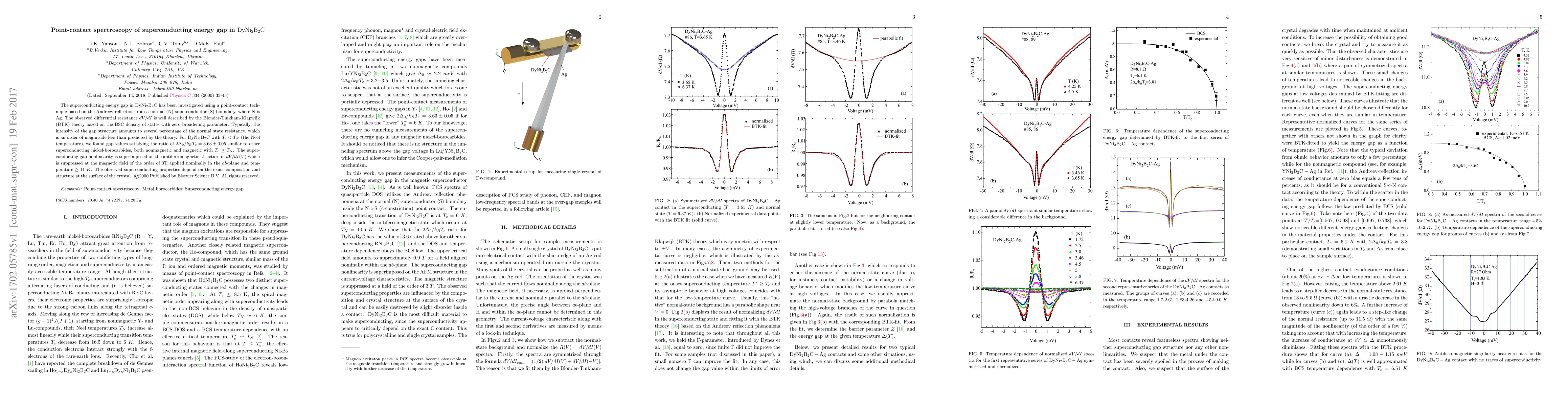 Researchers used point-contact spectroscopy to investigate the superconducting energy gap in DyNi2B2C, finding a gap value similar to other nickel-borocarbides with Tc < TN, and observing nonlinearity that depends on crystal surface composition and structure.