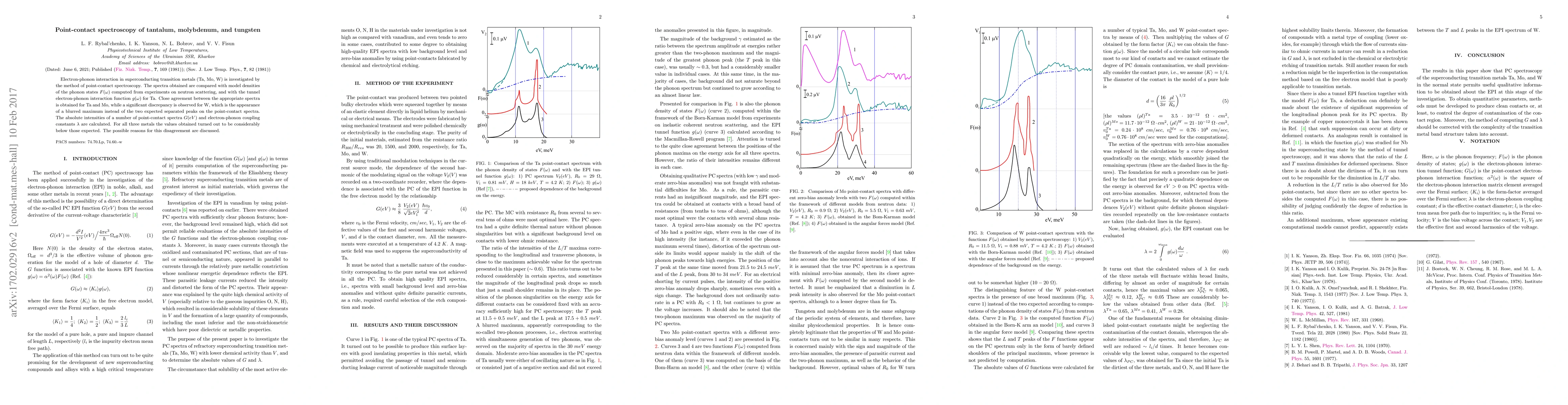 This research investigates electron-phonon interactions in superconducting transition metals (Ta, Mo, W) using point-contact spectroscopy, finding close agreement between measured spectra and phonon state models for Ta and Mo, but a significant discrepancy for W. The study also notes that calculated intensities and coupling constants are much lower than expected, with possible reasons for these discrepancies discussed.