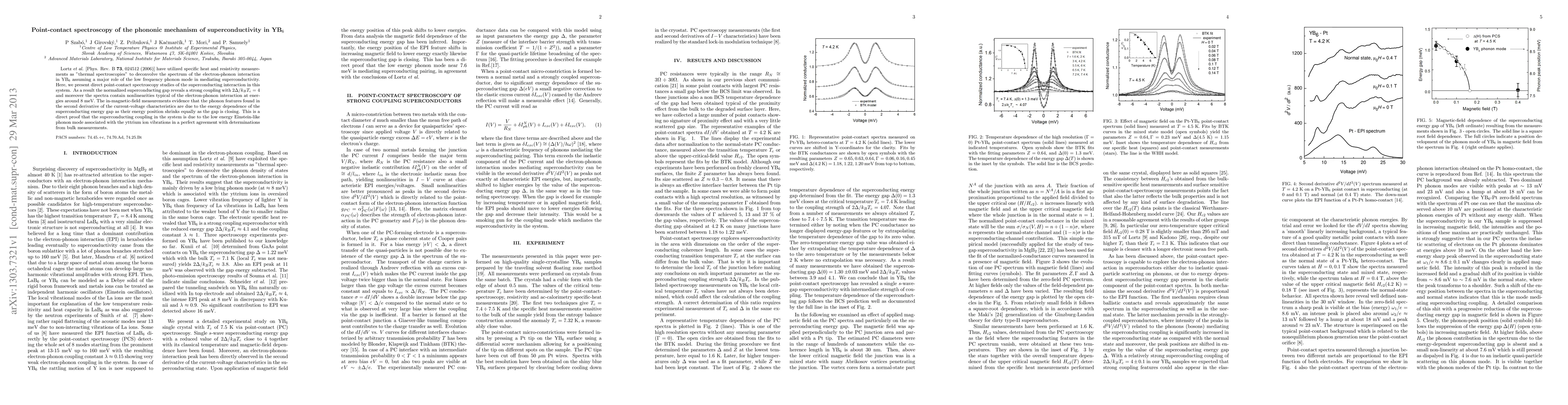 Lortz et al. [Phys. Rev. B 73, 024512 (2006)] have utilized specific heat and resistivity measurements as "thermal spectroscopies" to deconvolve the spectrum of the electron-phonon interaction in YB$_6$ assuming a major role of the low frequency phonon mode in mediating superconductivity. Here, we present direct point-contact spectroscopy studies of the superconducting interaction in this system. As a result the normalized superconducting gap reveals a strong coupling with $2\Delta/k_BT_c = 4$ and moreover the spectra contain nonlinearities typical of the electron-phonon interaction at energies around 8 meV. The in-magnetic-field measurements evidence that the phonon features found in the second derivative of the current-voltage characteristics are due to the energy dependence of the superconducting energy gap as their energy position shrinks equally as the gap is closing. This is a direct proof that the superconducting coupling in the system is due to the low energy Einstein-like phonon mode associated with the yttrium ion vibrations in a perfect agreement with determinations from bulk measurements.