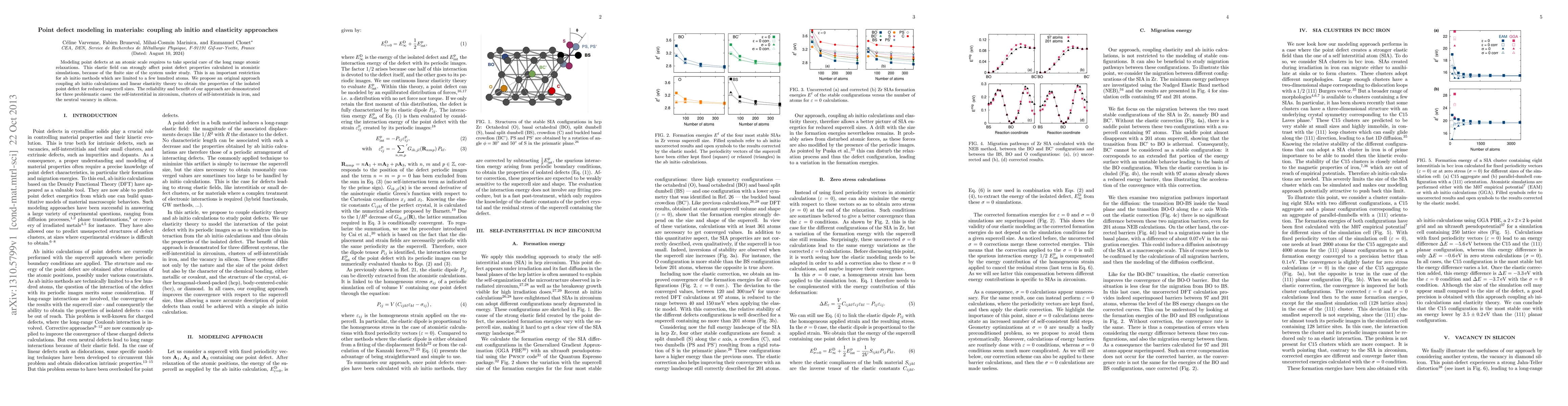 This paper proposes a novel method combining ab initio calculations and linear elasticity theory to model point defects in materials, addressing the limitations of finite system sizes in atomistic simulations. The approach is validated through its application to self-interstitials in zirconium, interstitial clusters in iron, and neutral vacancies in silicon.