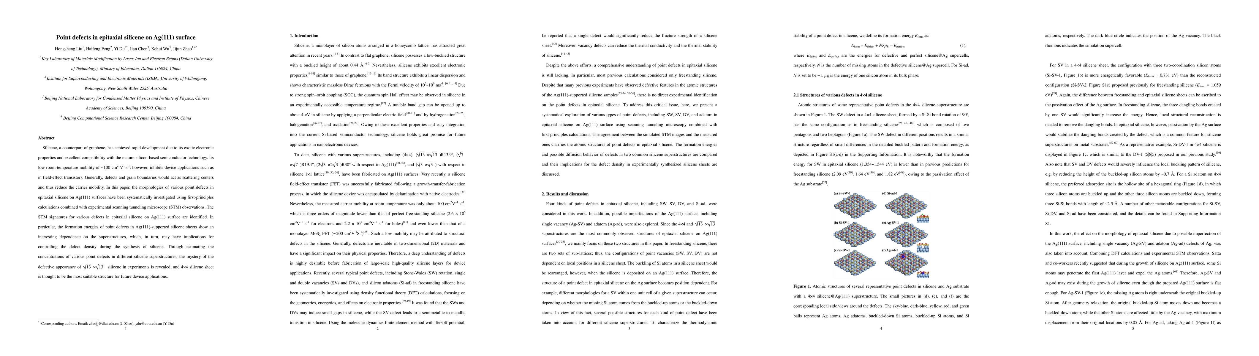 Silicene, a counterpart of graphene, has achieved rapid development due to its exotic electronic properties and excellent compatibility with the mature silicon-based semiconductor technology. Its low room-temperature mobility of about 100 cm2V-1s-1, however, inhibits device applications such as in field-effect transistors. Generally, defects and grain boundaries would act as scattering centers and thus reduce the carrier mobility. In this paper, the morphologies of various point defects in epitaxial silicene on Ag(111) surfaces have been systematically investigated using first-principles calculations combined with experimental scanning tunneling microscope (STM) observations. The STM signatures for various defects in epitaxial silicene on Ag(111) surface are identified. In particular, the formation energies of point defects in Ag(111)-supported silicene sheets show an interesting dependence on the superstructures, which, in turn, may have implications for controlling the defect density during the synthesis of silicene. Through estimating the concentrations of various point defects in different silicene superstructures, the mystery of the defective appearance of v13*v13 silicene in experiments is revealed, and 4*4 silicene sheet is thought to be the most suitable structure for future device applications.