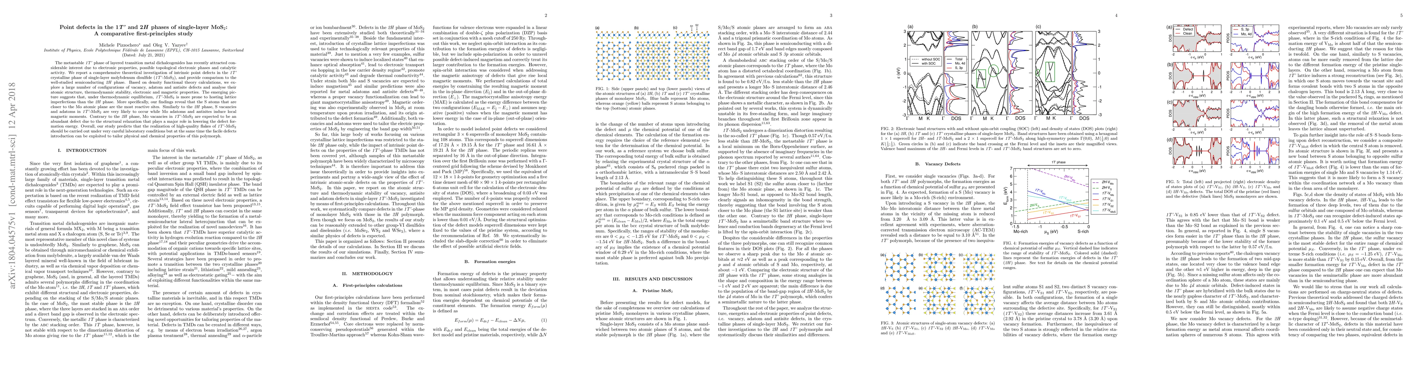 This study uses density functional theory to investigate intrinsic point defects in the 1$T'$ and 2$H$ phases of single-layer MoS$_2$, revealing that 1$T'$-MoS$_2$ is more prone to lattice imperfections than 2$H$-MoS$_2$, particularly due to the reactivity of sulfur atoms closer to the molybdenum plane and the abundance of Mo vacancies in 1$T'$-MoS$_2$.