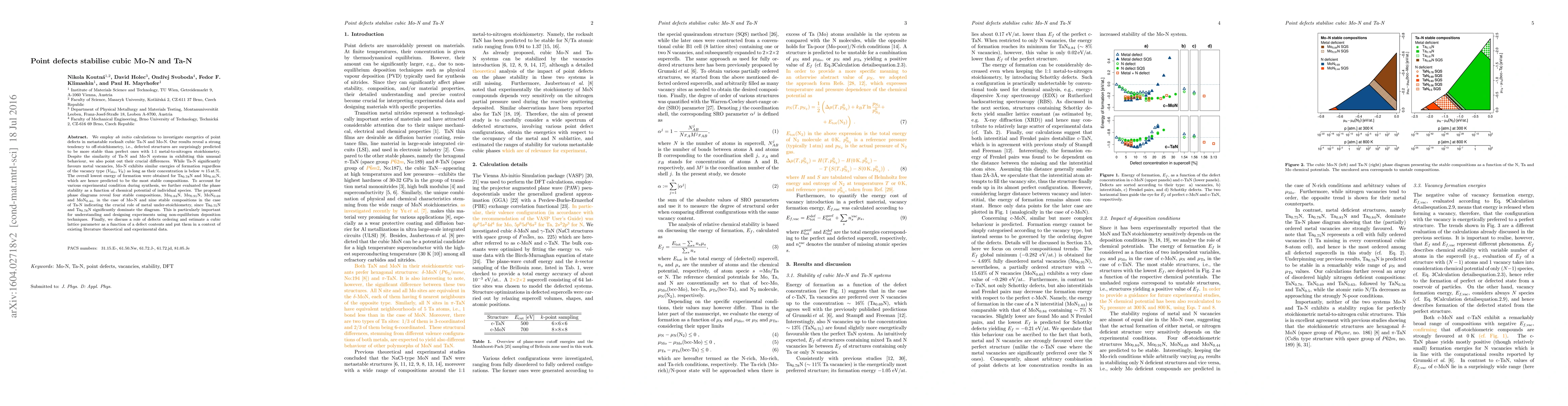 This paper uses \textit{ab initio} calculations to show that cubic Ta-N and Mo-N are more stable with off-stoichiometric compositions, particularly favoring metal vacancies. The most stable compositions identified are $\text{Ta}_{0.78}\text{N}$ and $\text{Mo}_{0.91}\text{N}$, with implications for non-equilibrium synthesis techniques.