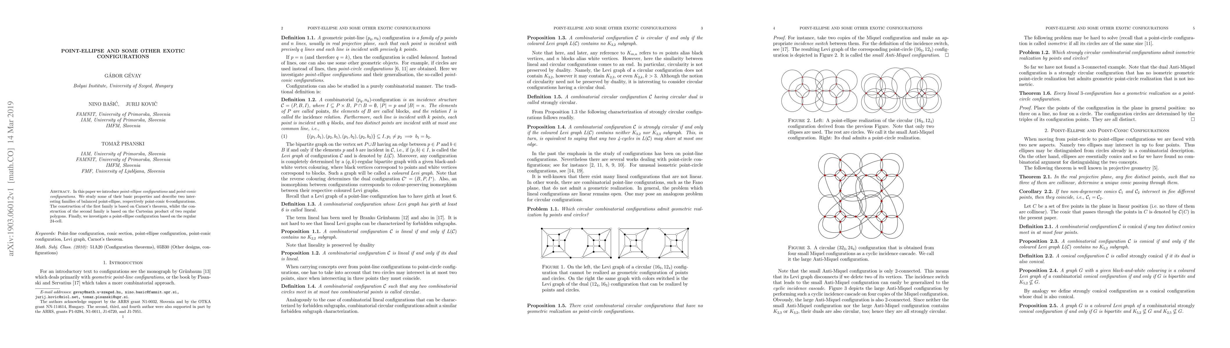 In this paper we introduce point-ellipse configurations and point-conic configurations. We study some of their basic properties and describe two interesting families of balanced point-ellipse, respectively point-conic $6$-configurations. The construction of the first family is based on Carnot's theorem, whilst the construction of the second family is based on the Cartesian product of two regular polygons. Finally, we investigate a point-ellipse configuration based on the regular $24$-cell.