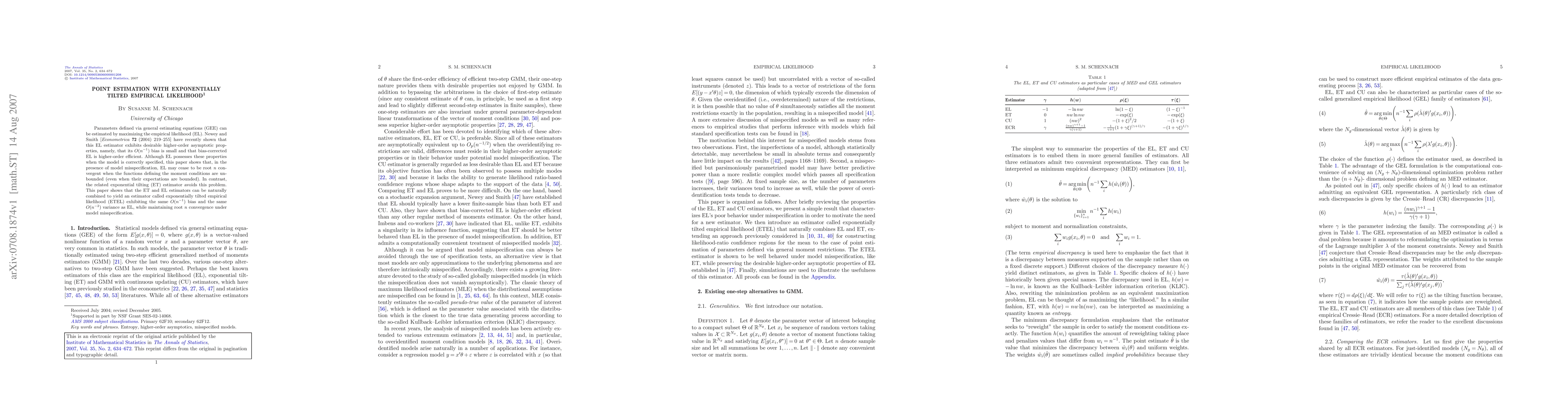 Parameters defined via general estimating equations (GEE) can be estimated by maximizing the empirical likelihood (EL). Newey and Smith [Econometrica 72 (2004) 219--255] have recently shown that this EL estimator exhibits desirable higher-order asymptotic properties, namely, that its $O(n^{-1})$ bias is small and that bias-corrected EL is higher-order efficient. Although EL possesses these properties when the model is correctly specified, this paper shows that, in the presence of model misspecification, EL may cease to be root n convergent when the functions defining the moment conditions are unbounded (even when their expectations are bounded). In contrast, the related exponential tilting (ET) estimator avoids this problem. This paper shows that the ET and EL estimators can be naturally combined to yield an estimator called exponentially tilted empirical likelihood (ETEL) exhibiting the same $O(n^{-1})$ bias and the same $O(n^{-2})$ variance as EL, while maintaining root n convergence under model misspecification.