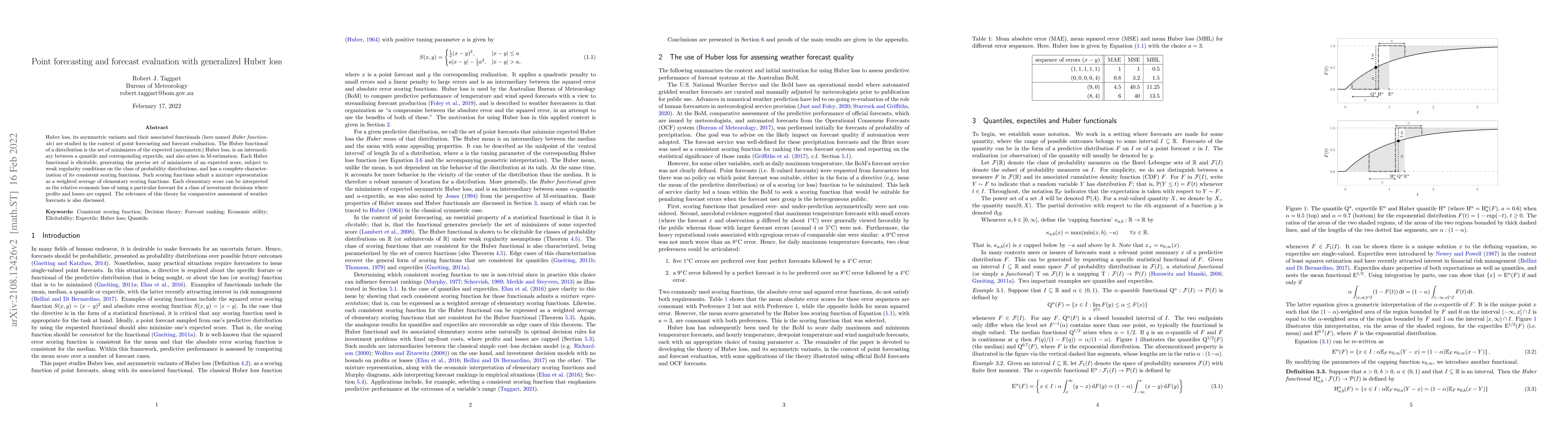 Researchers study Huber loss and its variants for point forecasting and evaluation, finding that they can be used to generate scoring functions that capture economic losses for specific investment decisions. The theory has implications for comparative assessment of weather forecasts.