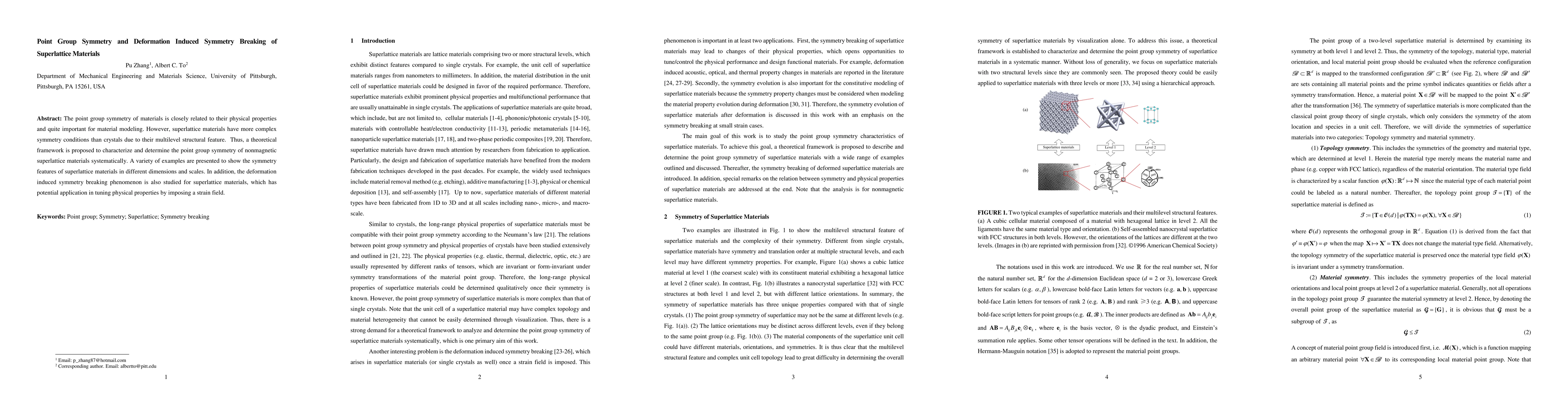 This paper proposes a theoretical framework for understanding the point group symmetry of nonmagnetic superlattice materials, highlighting their complex symmetry conditions due to multilevel structures. It also investigates deformation-induced symmetry breaking, suggesting its potential for tuning physical properties via strain fields.
