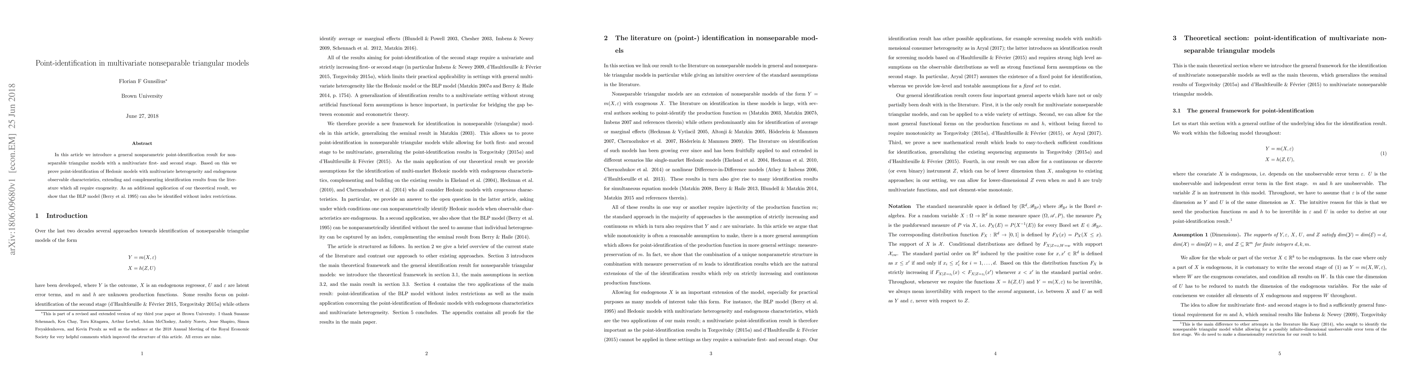This paper establishes a nonparametric point-identification result for nonseparable triangular models with multivariate stages, extending identification to Hedonic models with multivariate heterogeneity and endogenous characteristics. It also demonstrates the identification of the BLP model without index restrictions.