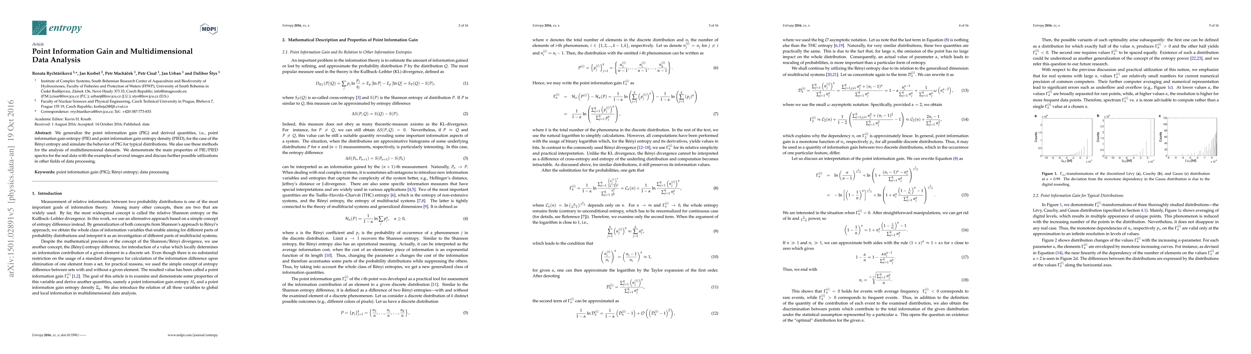 We generalize the Point information gain (PIG) and derived quantities, i.e. Point information entropy (PIE) and Point information entropy density (PIED), for the case of R\'enyi entropy and simulate the behavior of PIG for typical distributions. We also use these methods for the analysis of multidimensional datasets. We demonstrate the main properties of PIE/PIED spectra for the real data on the example of several images, and discuss possible further utilization in other fields of data processing.