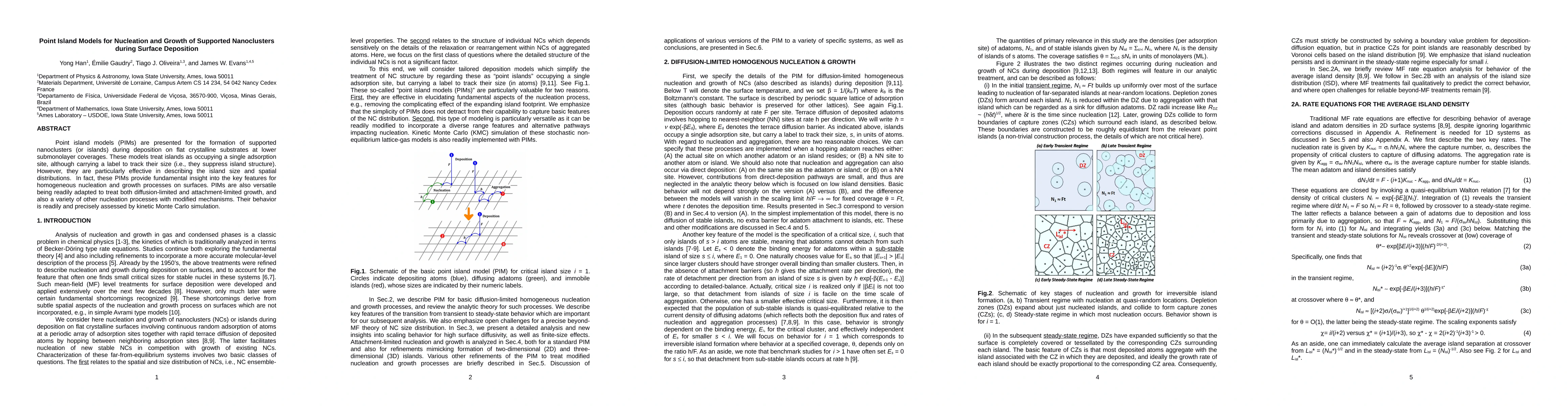 Point island models (PIMs) are presented for the formation of supported nanoclusters (or islands) during deposition on flat crystalline substrates at lower submonolayer coverages. These models treat islands as occupying a single adsorption site, although carrying a label to track their size (i.e., they suppress island structure). However, they are particularly effective in describing the island size and spatial distributions. In fact, these PIMs provide fundamental insight into the key features for homogeneous nucleation and growth processes on surfaces. PIMs are also versatile being readily adapted to treat both diffusion-limited and attachment-limited growth, and also a variety of other nucleation processes with modified mechanisms. Their behavior is readily and precisely assessed by kinetic Monte Carlo simulation.