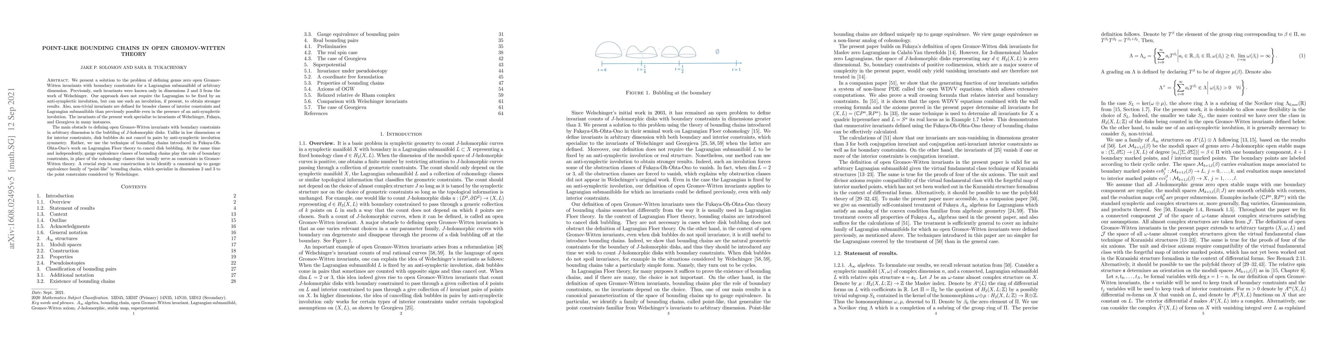 The paper introduces a solution to defining genus zero open Gromov-Witten invariants with boundary constraints for Lagrangian submanifolds of arbitrary dimension, using bounding chains instead of disk bubbles.
