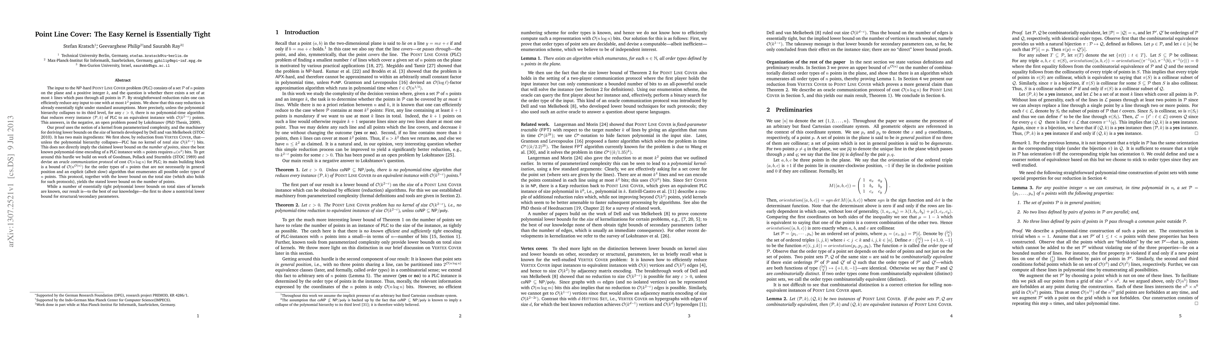 The input to the NP-hard Point Line Cover problem (PLC) consists of a set $P$ of $n$ points on the plane and a positive integer $k$, and the question is whether there exists a set of at most $k$ lines which pass through all points in $P$. A simple polynomial-time reduction reduces any input to one with at most $k^2$ points. We show that this is essentially tight under standard assumptions. More precisely, unless the polynomial hierarchy collapses to its third level, there is no polynomial-time algorithm that reduces every instance $(P,k)$ of PLC to an equivalent instance with $O(k^{2-\epsilon})$ points, for any $\epsilon>0$. This answers, in the negative, an open problem posed by Lokshtanov (PhD Thesis, 2009). Our proof uses the machinery for deriving lower bounds on the size of kernels developed by Dell and van Melkebeek (STOC 2010). It has two main ingredients: We first show, by reduction from Vertex Cover, that PLC---conditionally---has no kernel of total size $O(k^{2-\epsilon})$ bits. This does not directly imply the claimed lower bound on the number of points, since the best known polynomial-time encoding of a PLC instance with $n$ points requires $\omega(n^{2})$ bits. To get around this we build on work of Goodman et al. (STOC 1989) and devise an oracle communication protocol of cost $O(n\log n)$ for PLC; its main building block is a bound of $O(n^{O(n)})$ for the order types of $n$ points that are not necessarily in general position, and an explicit algorithm that enumerates all possible order types of n points. This protocol and the lower bound on total size together yield the stated lower bound on the number of points. While a number of essentially tight polynomial lower bounds on total sizes of kernels are known, our result is---to the best of our knowledge---the first to show a nontrivial lower bound for structural/secondary parameters.