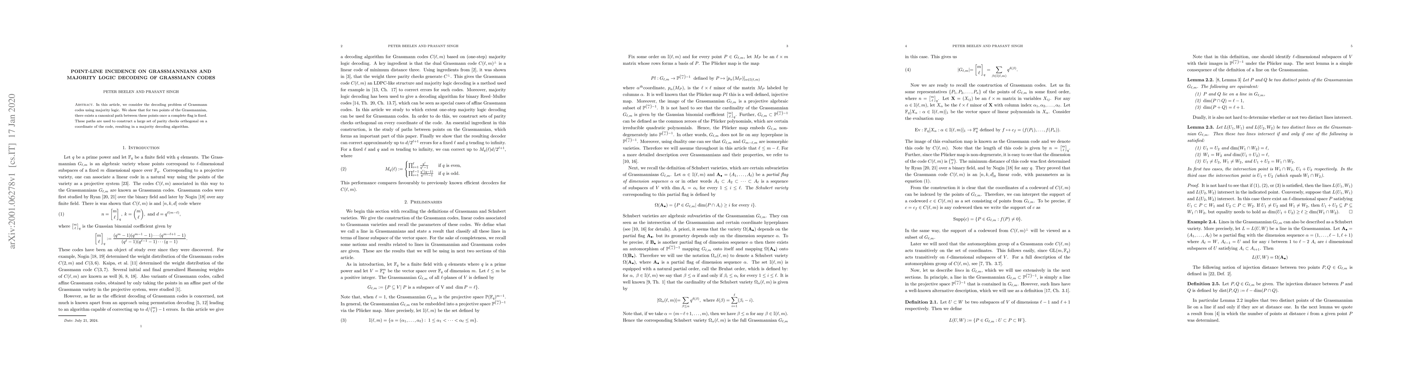 Researchers developed a majority logic decoding algorithm for Grassmann codes, leveraging canonical paths between points on the Grassmannian to construct orthogonal parity checks.