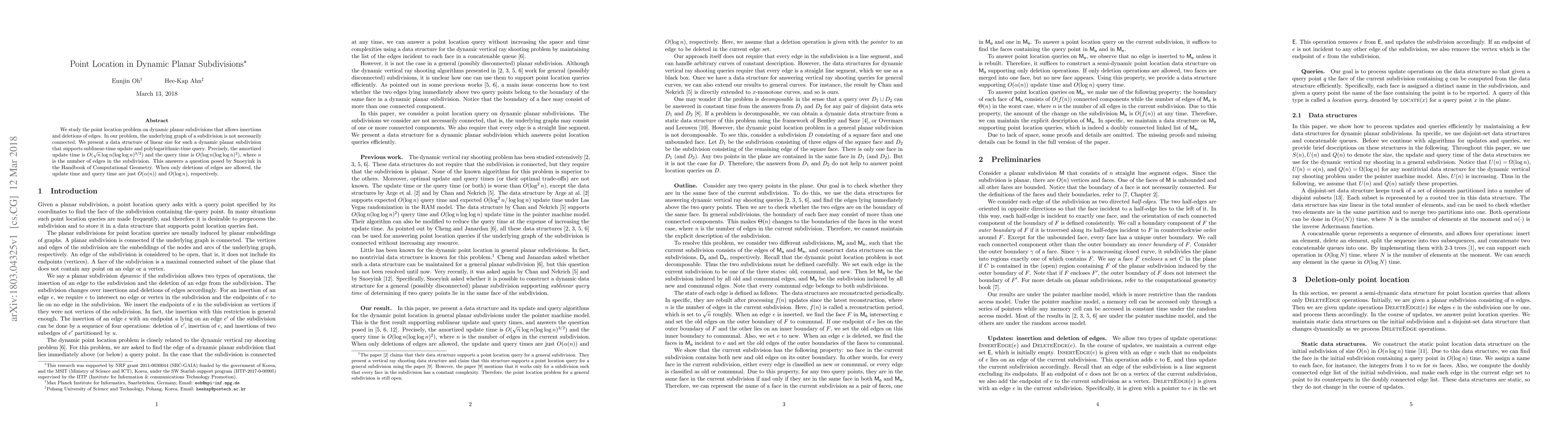 We study the point location problem on dynamic planar subdivisions that allows insertions and deletions of edges. In our problem, the underlying graph of a subdivision is not necessarily connected. We present a data structure of linear size for such a dynamic planar subdivision that supports sublinear-time update and polylogarithmic-time query. Precisely, the amortized update time is $O(\sqrt{n}\log n(\log\log n)^{3/2})$ and the query time is $O(\log n(\log\log n)^2)$, where $n$ is the number of edges in the subdivision. This answers a question posed by Snoeyink in the Handbook of Computational Geometry. When only deletions of edges are allowed, the update time and query time are just $O(\alpha(n))$ and $O(\log n)$, respectively.