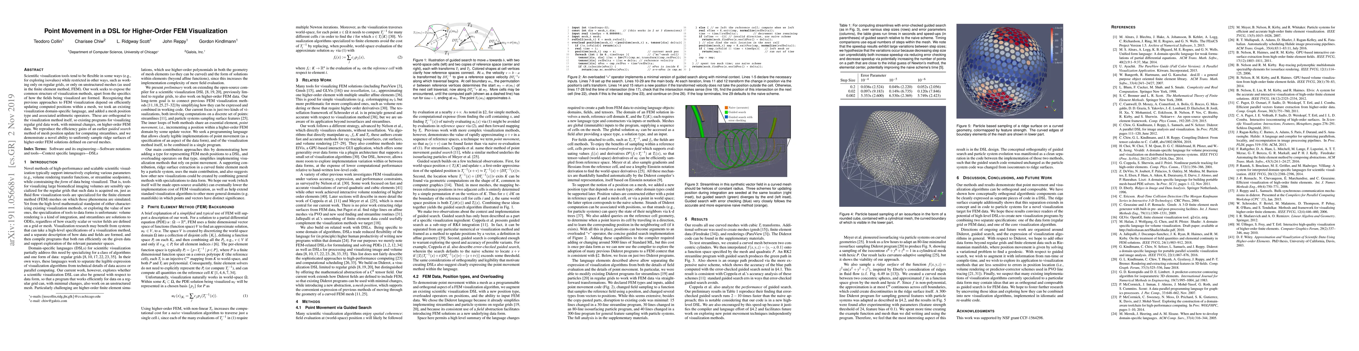 This paper introduces a domain-specific language extension for scientific visualization that allows efficient computation and visualization of higher-order finite element method (FEM) data. The authors added mesh position types and arithmetic operations to an existing DSL, enabling existing regular grid visualization programs to work with unstructured FEM meshes with minimal changes.