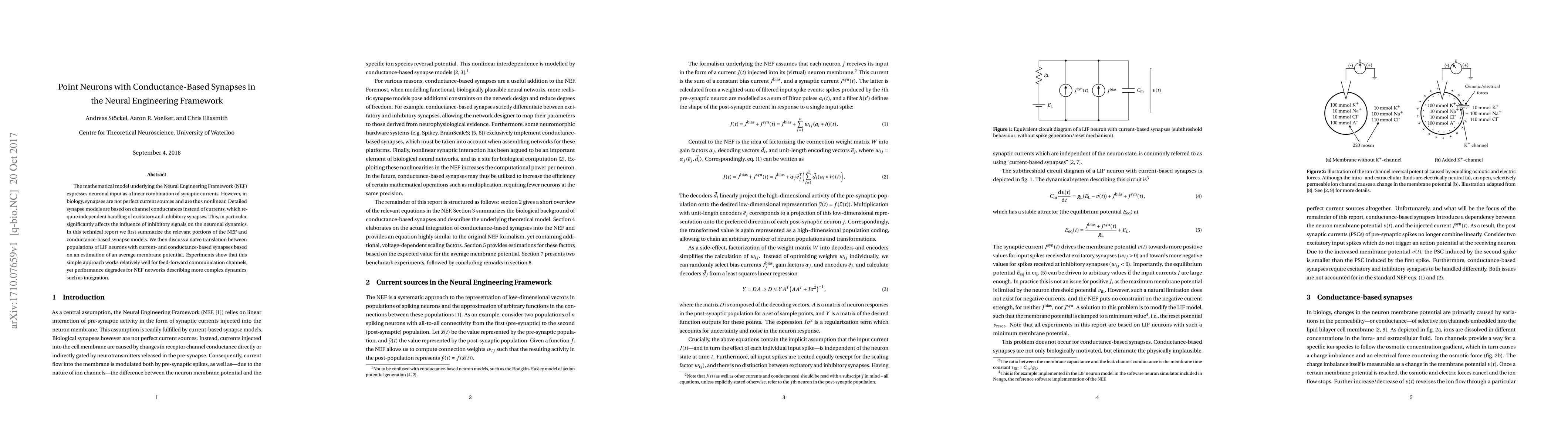 This paper discusses the integration of conductance-based synapse models into the Neural Engineering Framework (NEF) and evaluates a simple method for translating between current-based and conductance-based synapses. While this approach works well for feed-forward channels, it struggles with more complex dynamics in NEF networks.
