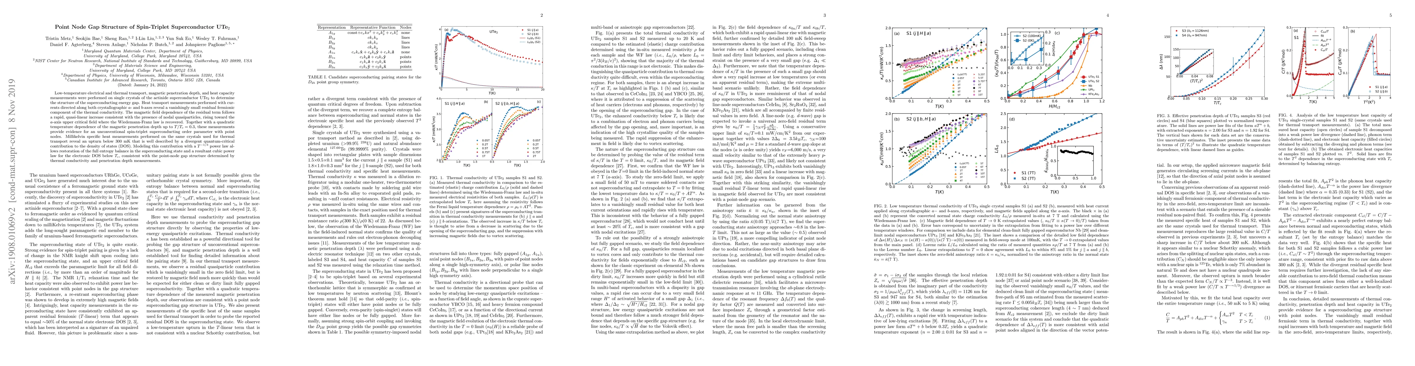 This study reveals an unconventional spin-triplet superconducting order parameter in UTe2 with a point node gap structure, evidenced by thermal transport and magnetic field dependence measurements. The specific heat data supports a T^{-1/3} power law, indicating a cubic electronic DOS below T_c, consistent with the point-node gap structure.