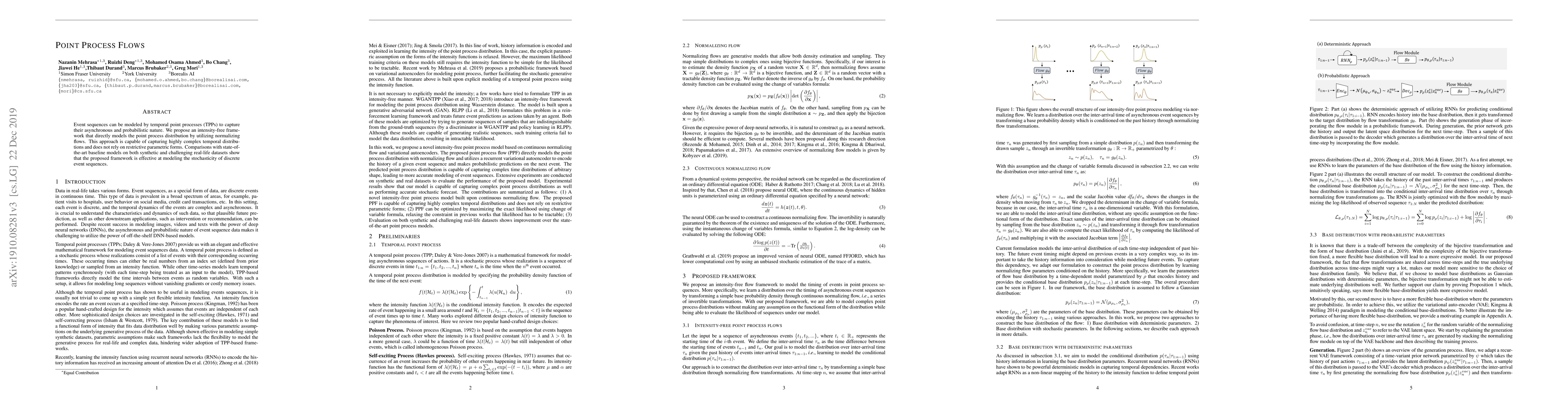 Event sequences can be modeled by temporal point processes (TPPs) to capture their asynchronous and probabilistic nature. We propose an intensity-free framework that directly models the point process distribution by utilizing normalizing flows. This approach is capable of capturing highly complex temporal distributions and does not rely on restrictive parametric forms. Comparisons with state-of-the-art baseline models on both synthetic and challenging real-life datasets show that the proposed framework is effective at modeling the stochasticity of discrete event sequences.