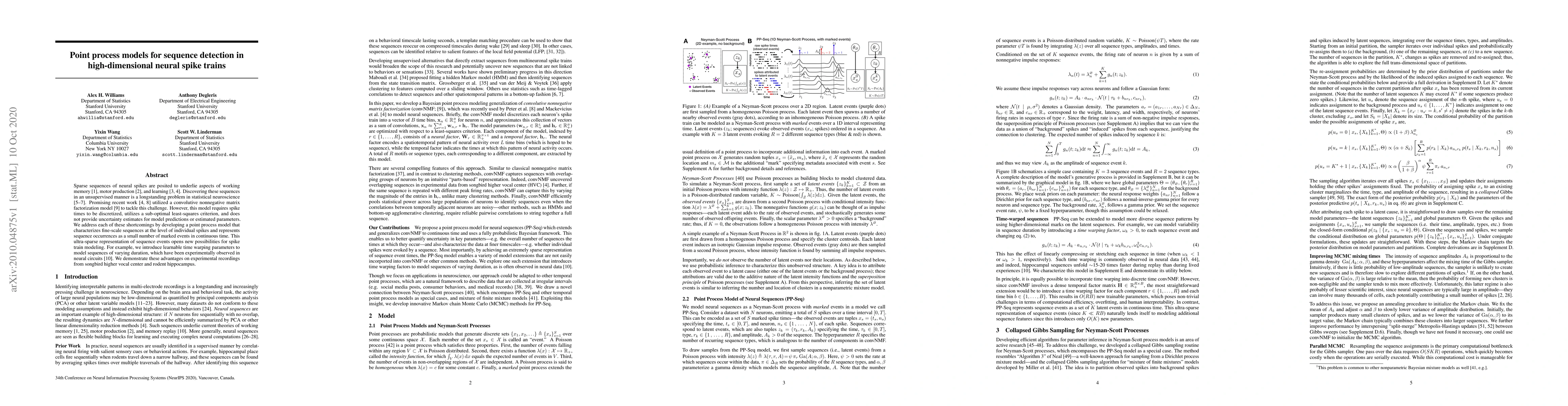 Researchers developed a point process model to detect sparse sequences of neural spikes in high-dimensional neural spike trains, addressing previous limitations such as discretization and uncertainty estimates. The new model was demonstrated on experimental recordings from songbirds and rodents, showing promise for understanding working memory, motor production, and learning.