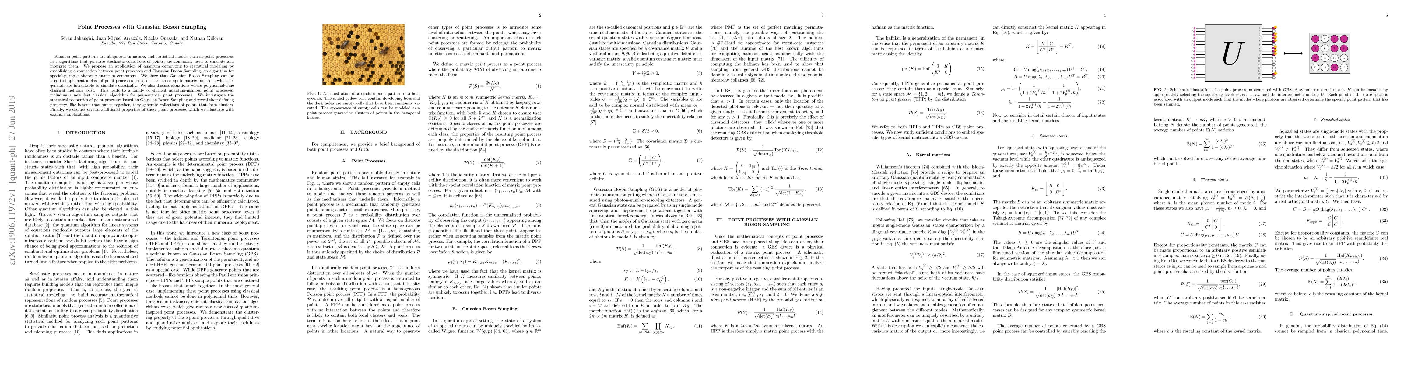 Random point patterns are ubiquitous in nature, and statistical models such as point processes, i.e., algorithms that generate stochastic collections of points, are commonly used to simulate and interpret them. We propose an application of quantum computing to statistical modeling by establishing a connection between point processes and Gaussian Boson Sampling, an algorithm for special-purpose photonic quantum computers. We show that Gaussian Boson Sampling can be used to implement a class of point processes based on hard-to-compute matrix functions which, in general, are intractable to simulate classically. We also discuss situations where polynomial-time classical methods exist. This leads to a family of efficient quantum-inspired point processes, including a new fast classical algorithm for permanental point processes. We investigate the statistical properties of point processes based on Gaussian Boson Sampling and reveal their defining property: like bosons that bunch together, they generate collections of points that form clusters. Finally, we discuss several additional properties of these point processes which we illustrate with example applications.