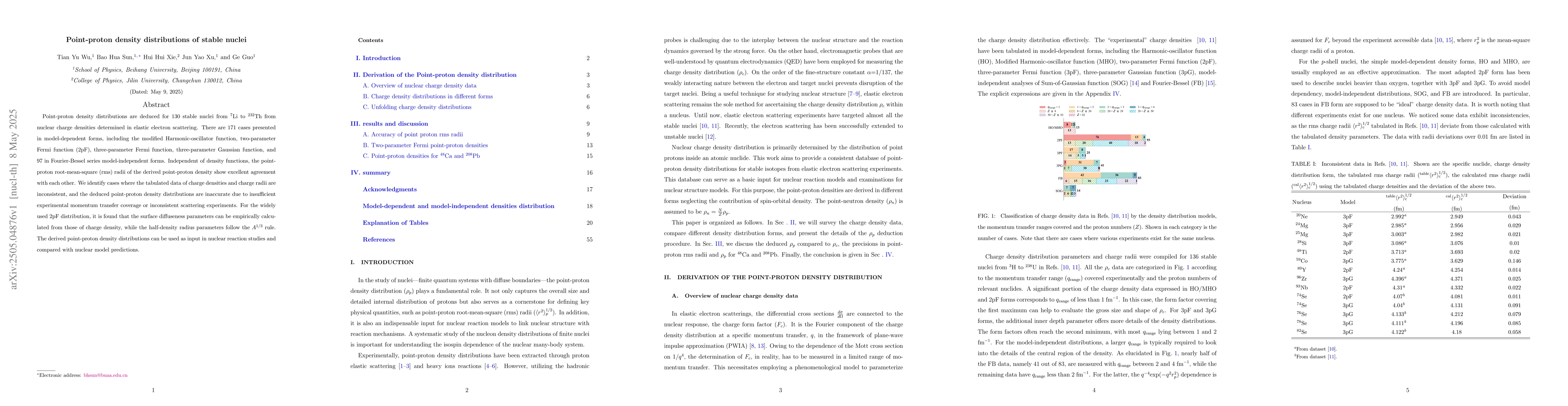 This paper deduces point-proton density distributions for 130 stable nuclei using nuclear charge densities from electron scattering, presenting 171 cases in various model forms. The study identifies inconsistencies in tabulated data and highlights the empirical calculation of surface diffuseness parameters for the 2pF distribution.