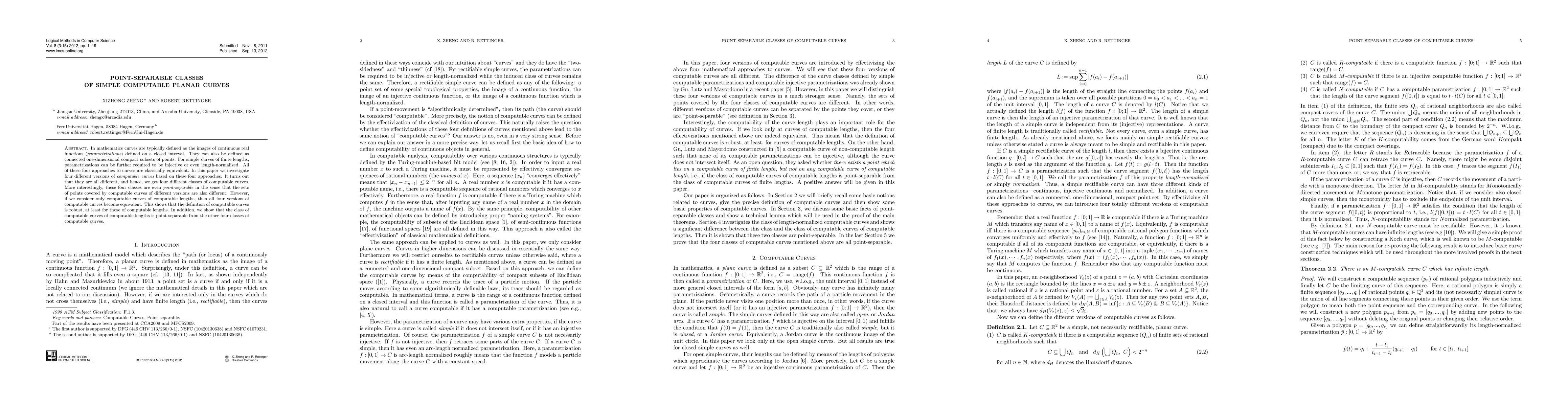 This paper examines four distinct versions of computable planar curves based on different mathematical definitions and finds that they yield separate classes of curves. It demonstrates that these classes are point-separable, meaning they cover different sets of points. However, when restricting to curves of computable lengths, all versions become equivalent, indicating the robustness of the definition for such curves.
