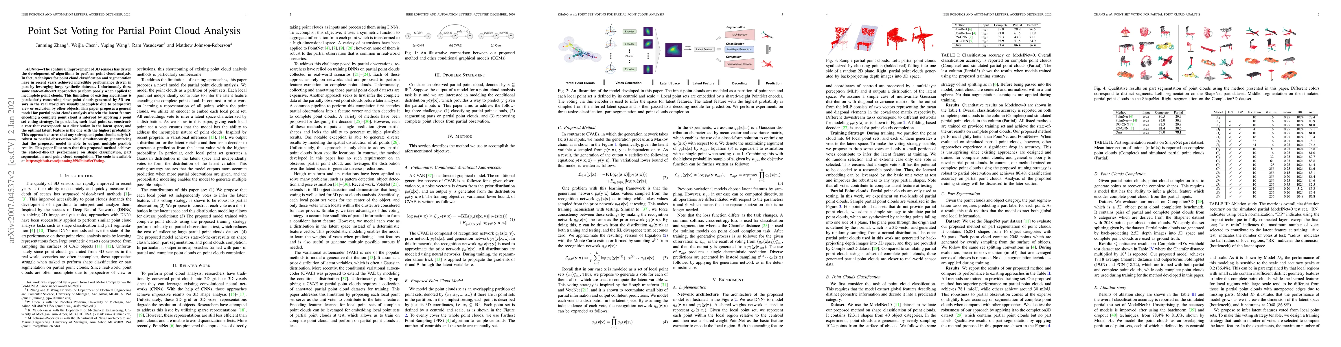 This paper proposes a local point set voting strategy for analyzing partial point clouds, inferring latent features to ensure robustness against incomplete observations. The method achieves state-of-the-art results in shape classification, part segmentation, and point cloud completion.