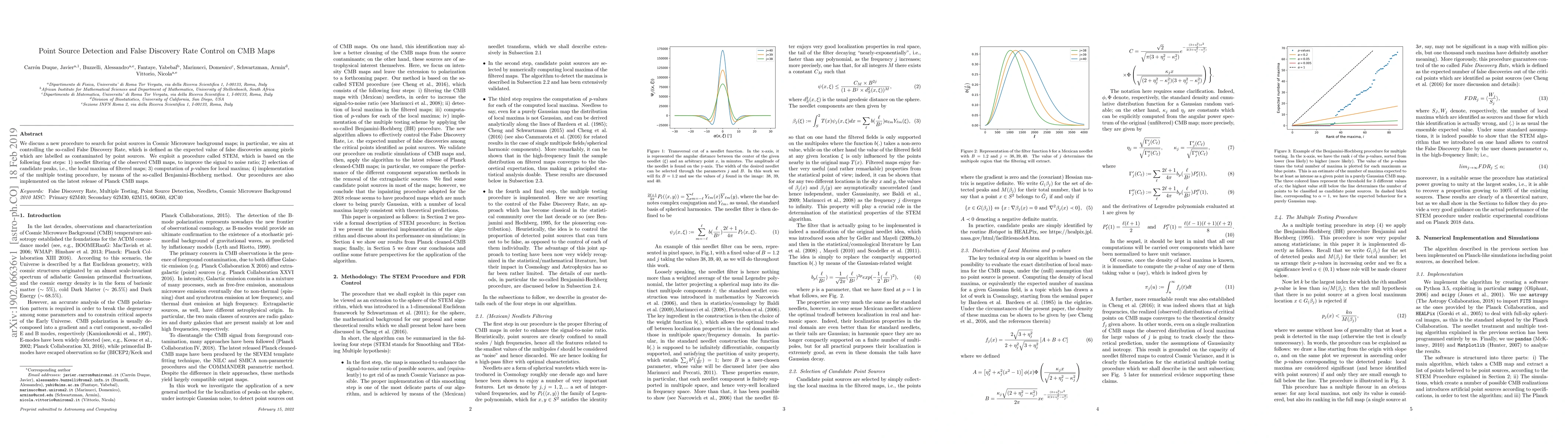 This paper introduces a new procedure called STEM for detecting point sources in Cosmic Microwave Background (CMB) maps while controlling the False Discovery Rate. The method involves needlet filtering, peak selection, p-value computation, and the Benjamini-Hochberg procedure for multiple testing, applied to the latest Planck CMB data.