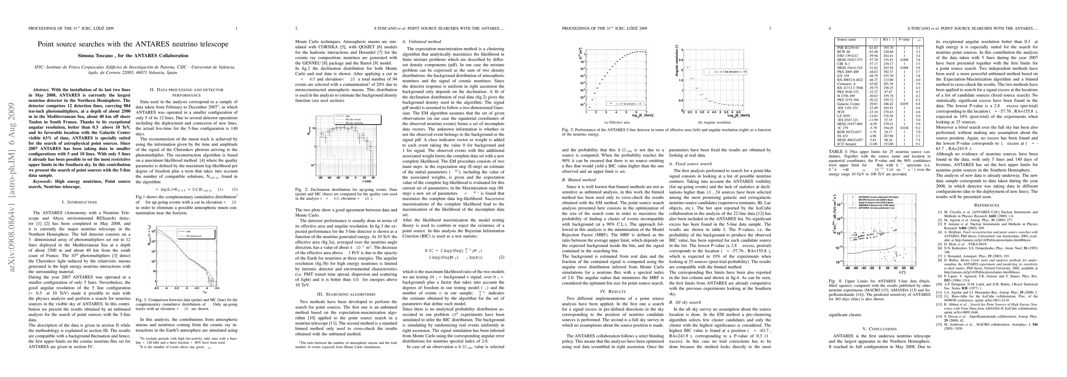 The ANTARES neutrino telescope, fully operational since 2008, has conducted searches for point sources of neutrinos with its 5-line configuration, setting stringent upper limits in the Southern sky. The study highlights ANTARES's exceptional angular resolution and favorable location for astrophysical observations.
