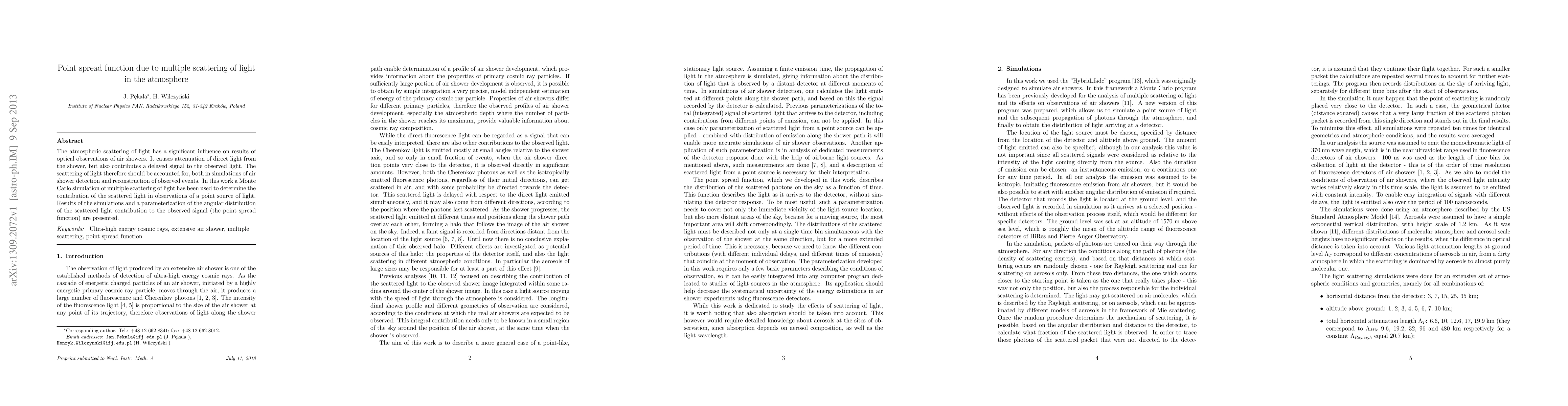 Researchers used a Monte Carlo simulation to study how light scattering in the atmosphere affects air shower observations, finding a new parameterization of the point spread function.
