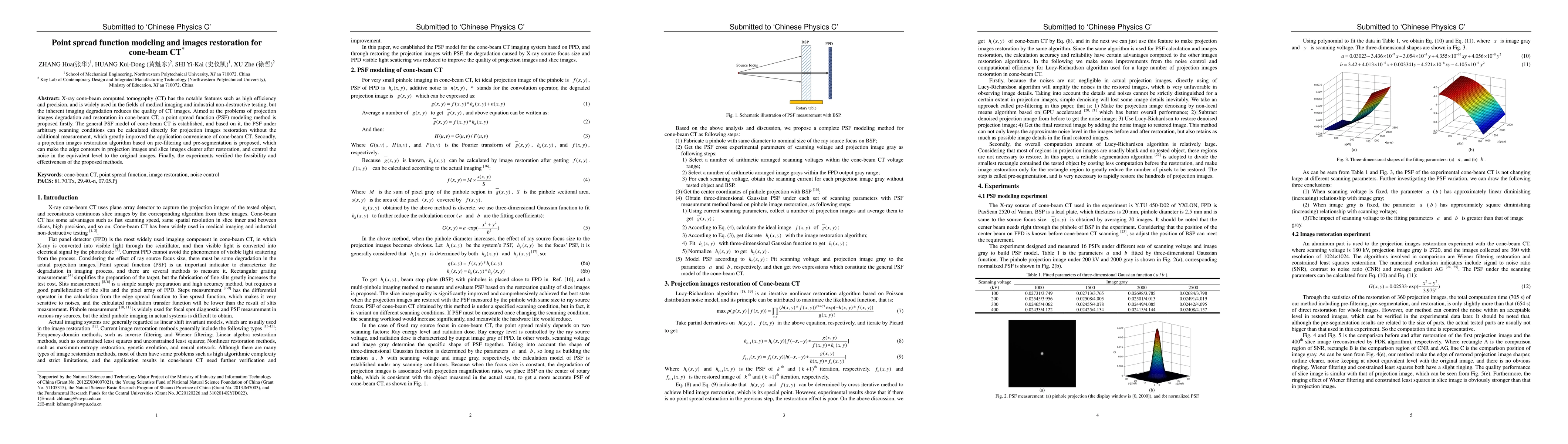 This paper proposes a point spread function (PSF) modeling method to improve the quality of cone-beam CT images by directly calculating the PSF under arbitrary scanning conditions for projection images restoration. It also introduces a restoration algorithm based on pre-filtering and pre-segmentation to enhance image clarity and control noise, validated through experiments.