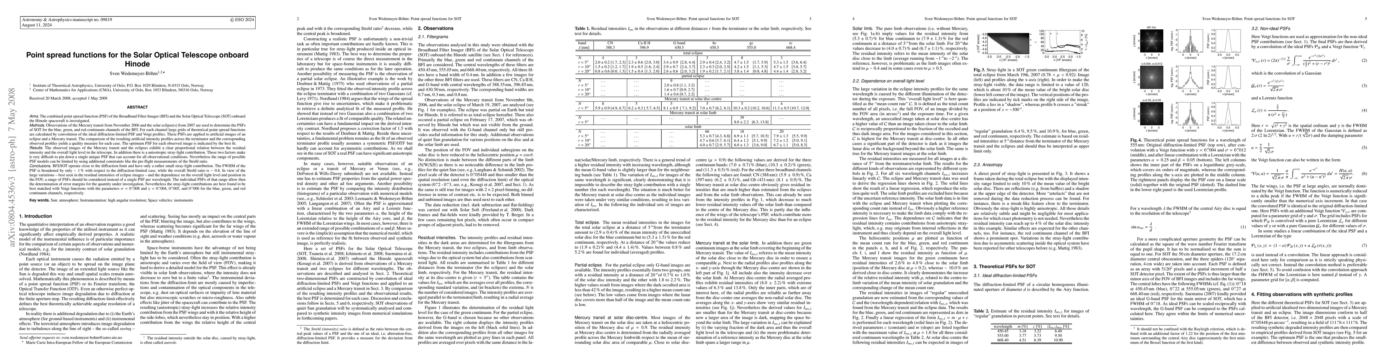 This paper investigates the point spread functions (PSFs) of the Solar Optical Telescope (SOT) on the Hinode spacecraft, using observations of Mercury transit and solar eclipses. The study finds that the PSFs for the blue, green, and red channels are close to the diffraction limit with minimal stray light, but require a range of PSFs to account for variations in light levels and position in the field of view.