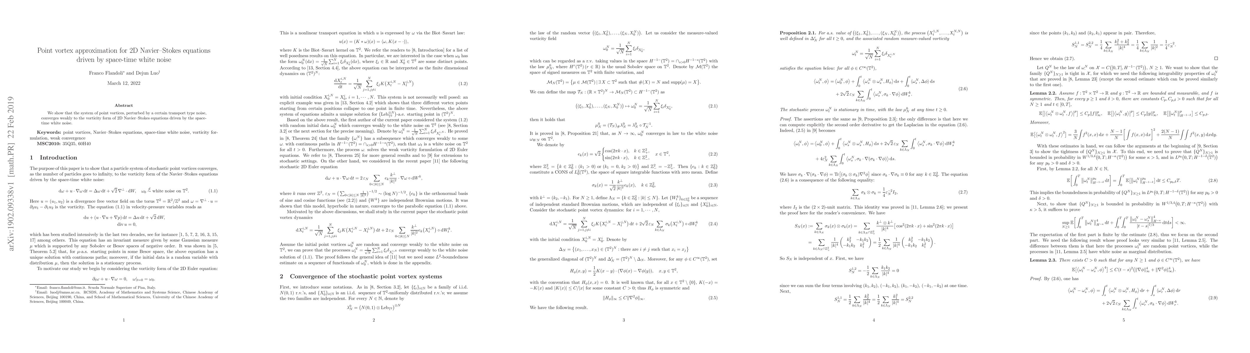 Summary: This paper demonstrates the weak convergence of a point vortex system, influenced by transport-type noise, to the 2D Navier-Stokes equations driven by space-time white noise, establishing a connection between deterministic vortex dynamics and stochastic fluid dynamics.