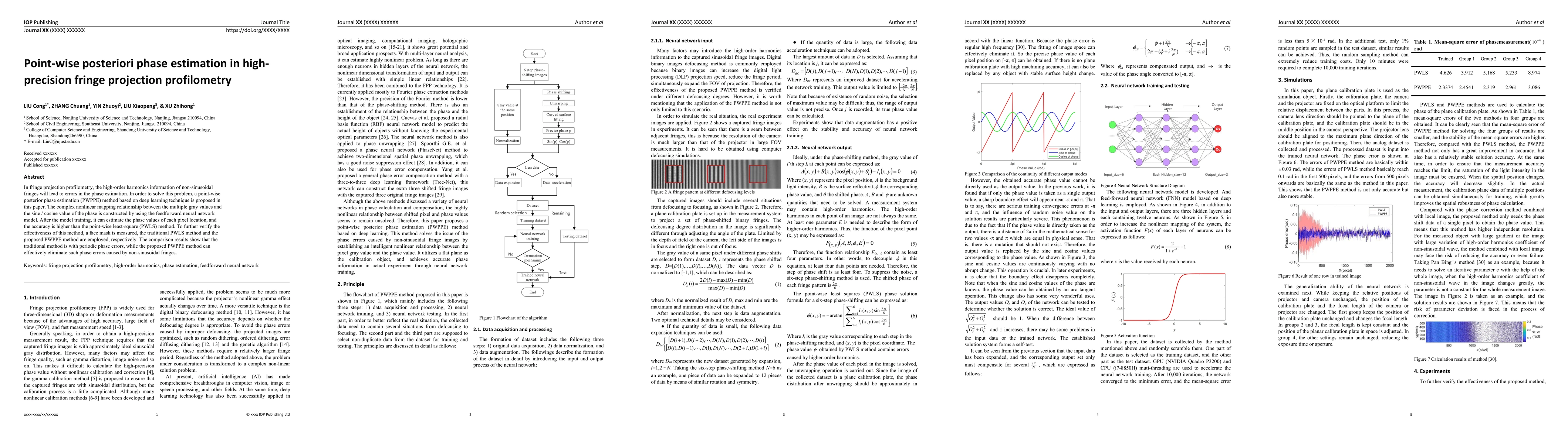 This paper introduces a deep learning-based method, Point-wise Posterior Phase Estimation (PWPPE), to improve phase estimation accuracy in fringe projection profilometry. Unlike traditional methods that struggle with non-sinusoidal fringes causing high-order harmonic errors, PWPPE uses a feedforward neural network to model the complex relationship between gray values and phase, resulting in more precise phase estimations. Experimental verification on a face mask demonstrates PWPPE's effectiveness in eliminating phase errors induced by non-sinusoidal fringes, outperforming the point-wise least-square (PWLS) method.