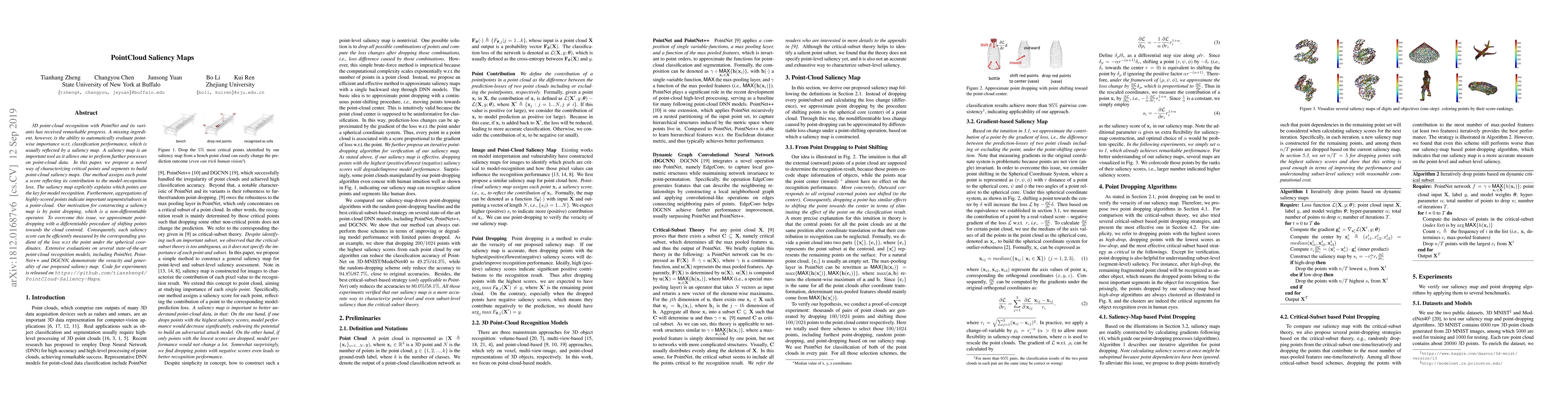 This paper introduces a novel method for generating point-cloud saliency maps, which highlight important points and segments for 3D object recognition. The approach approximates non-differentiable point-dropping with differentiable point-shifting towards the centroid, enabling efficient calculation of saliency scores via gradient descent in spherical coordinates. Evaluations on PointNet, PointNet++, and DGCNN demonstrate the effectiveness and versatility of the proposed saliency maps.