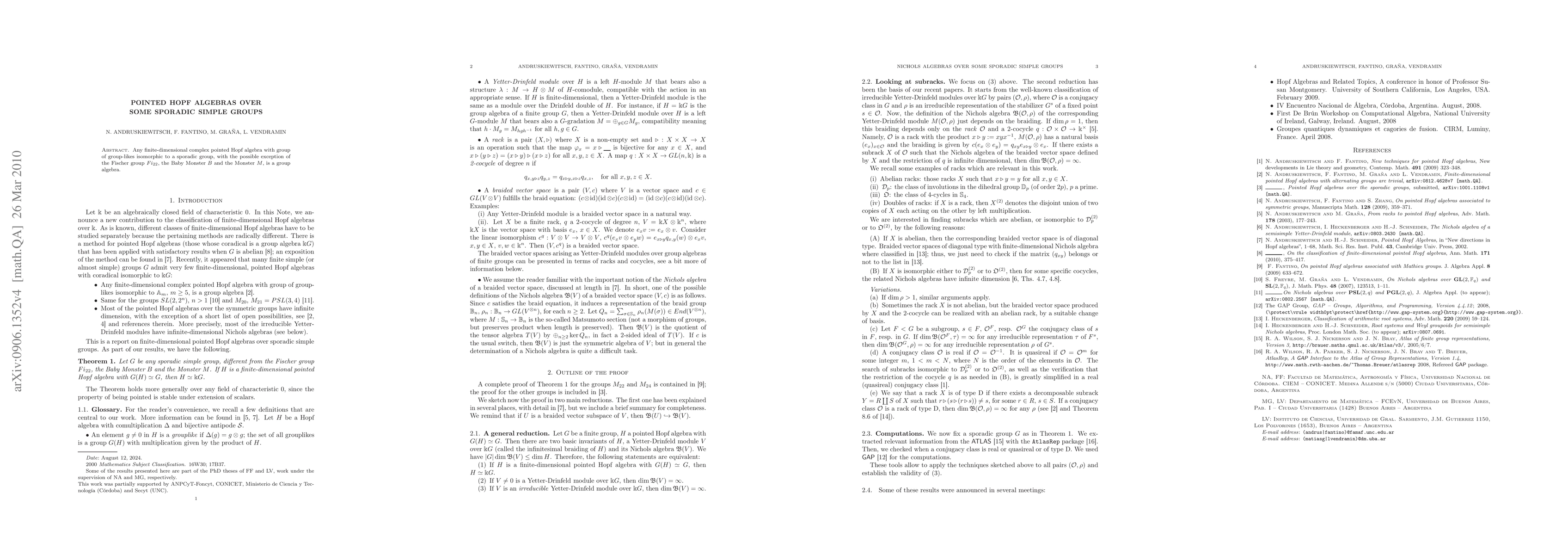 The paper presents a new method for classifying finite-dimensional pointed Hopf algebras over sporadic simple groups, utilizing the theory of Yetter-Drinfeld modules, Nichols algebras, and rack theory.