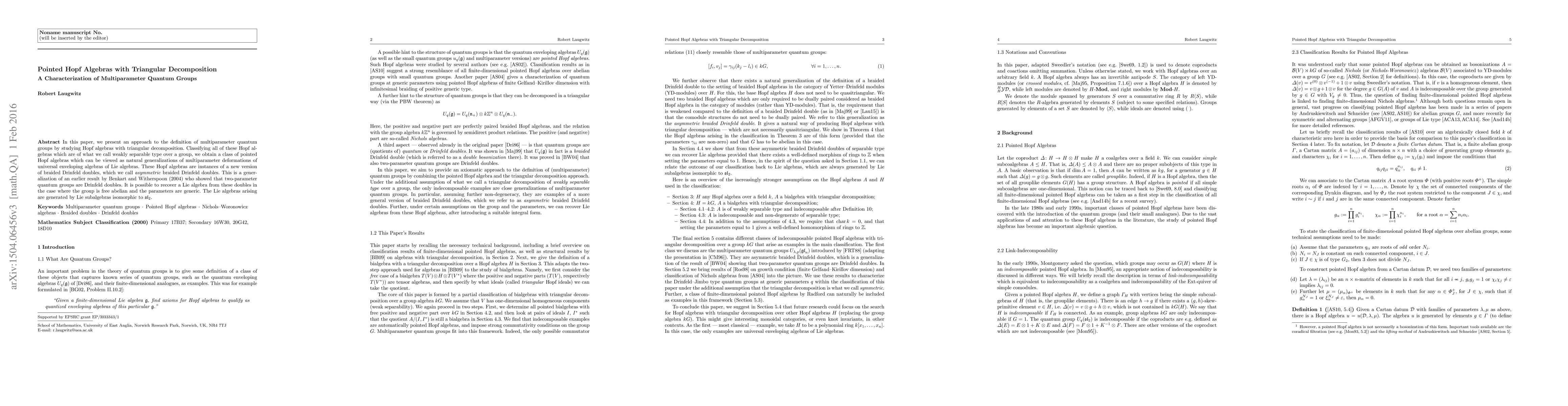 This paper introduces Hopf algebras with triangular decomposition as a means to define multiparameter quantum groups, classifying weakly separable types and presenting them as asymmetric braided Drinfeld doubles. These generalizations allow recovery of Lie algebras from the doubles when the group is free abelian and parameters are generic.