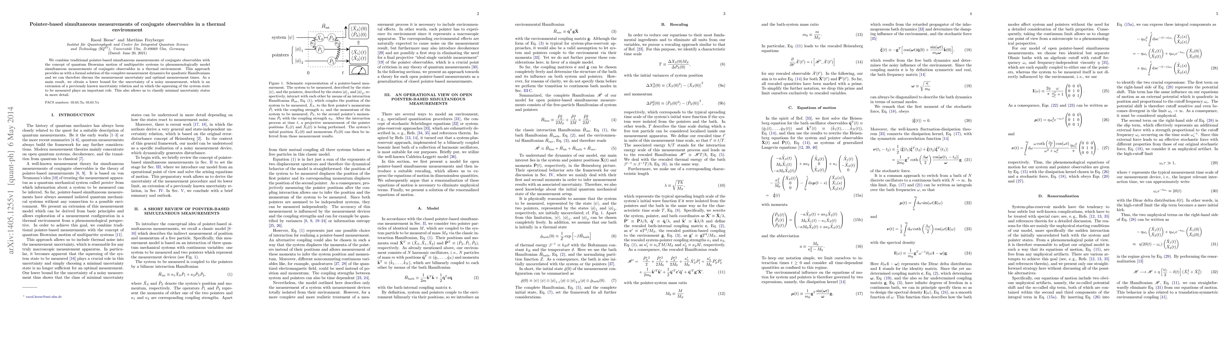 This paper combines pointer-based simultaneous measurements with quantum Brownian motion to model measurements in thermal environments, providing a formal solution for quadratic Hamiltonians and discussing measurement uncertainty and optimal times. It establishes a lower bound for noisy measurement uncertainty, extending previous uncertainty relations and emphasizing the role of system state squeezing.