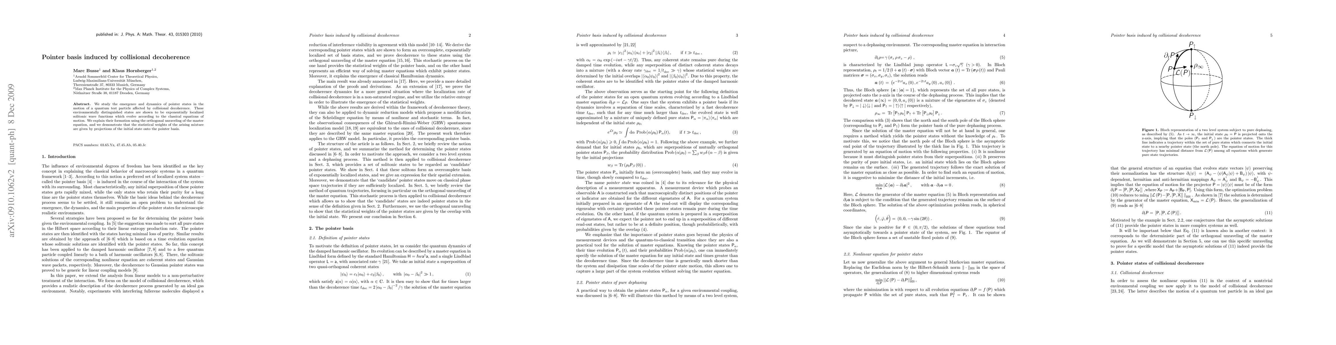 This paper investigates how pointer states emerge in a quantum test particle influenced by collisional decoherence, showing they are exponentially localized solitonic wave functions that follow classical motion. The formation of these states is explained through the orthogonal unraveling of the master equation, with their statistical weights derived from the initial state's projections onto the pointer basis.