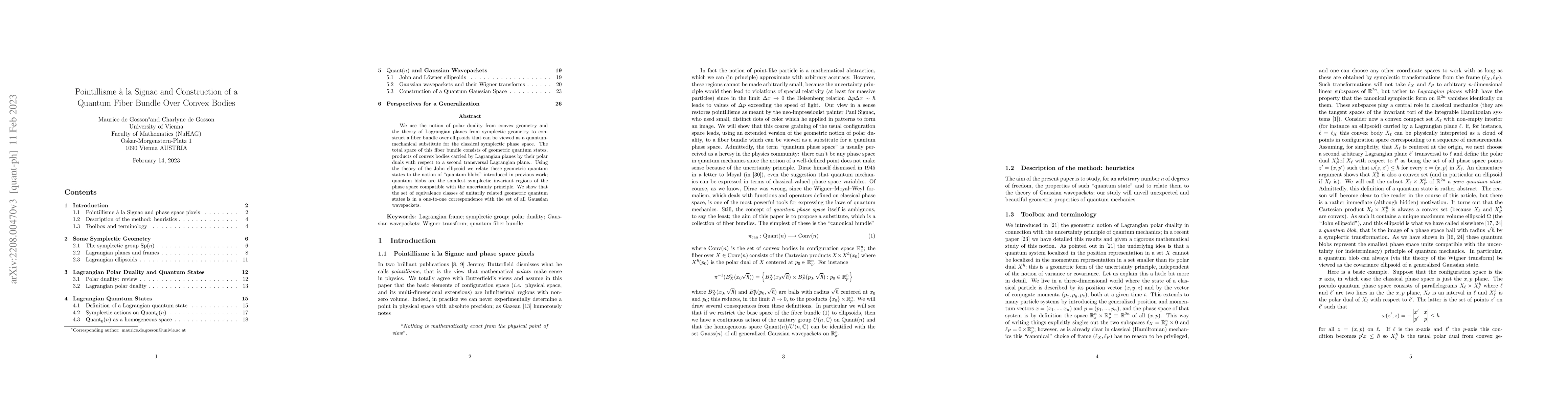 This paper constructs a quantum fiber bundle over ellipsoids using polar duality and Lagrangian planes, representing geometric quantum states as products of convex bodies. It links these states to "quantum blobs" and demonstrates a correspondence between equivalence classes of these states and Gaussian wavepackets.