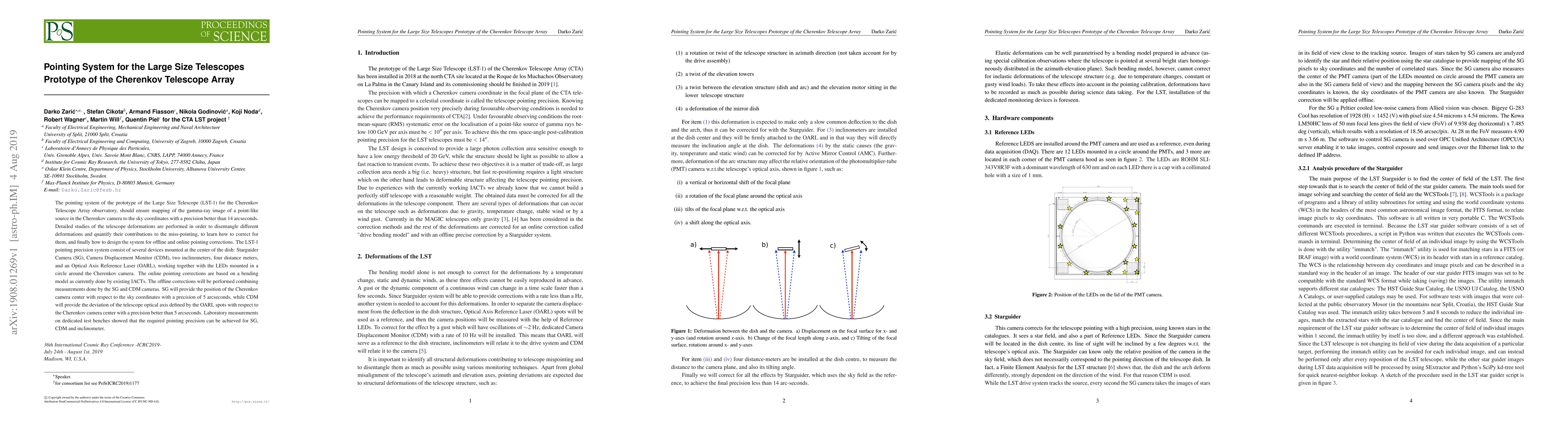 This paper details the development of the pointing system for the Large Size Telescope (LST-1) in the Cherenkov Telescope Array, aiming for gamma-ray image precision better than 14 arcseconds. The system integrates multiple devices for both online and offline corrections, achieving required precision through laboratory tests.