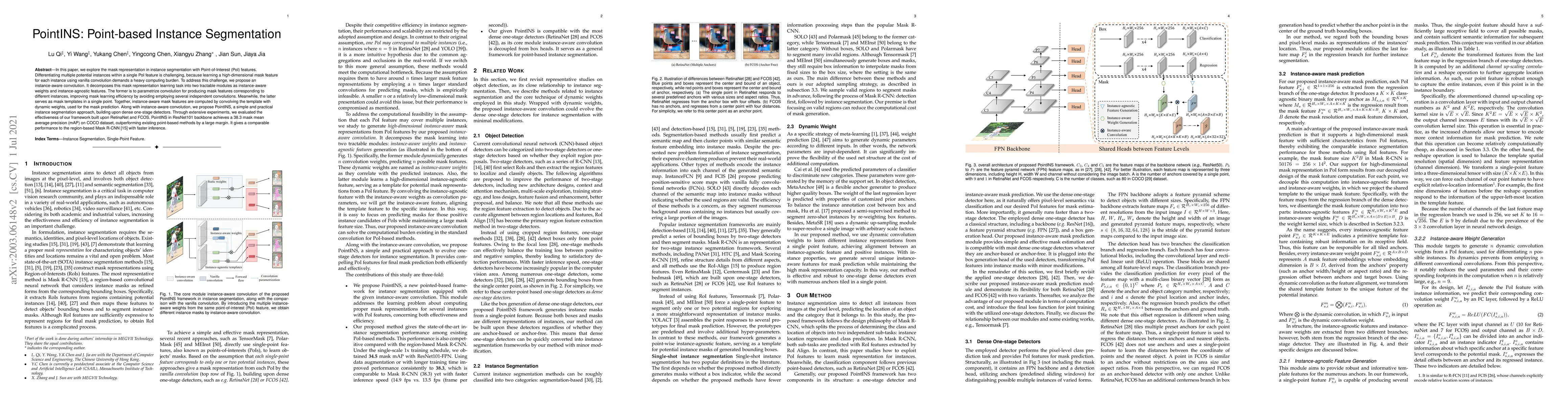 The paper introduces PointINS, a novel instance segmentation method using Point-of-Interest (PoI) features. It proposes instance-aware convolution to decompose mask representation learning into tractable modules, improving efficiency. PointINS, built on dense one-stage detectors, achieves 38.3 mask mAP on COCO, outperforming point-based methods and matching Mask R-CNN's performance with faster inference.
