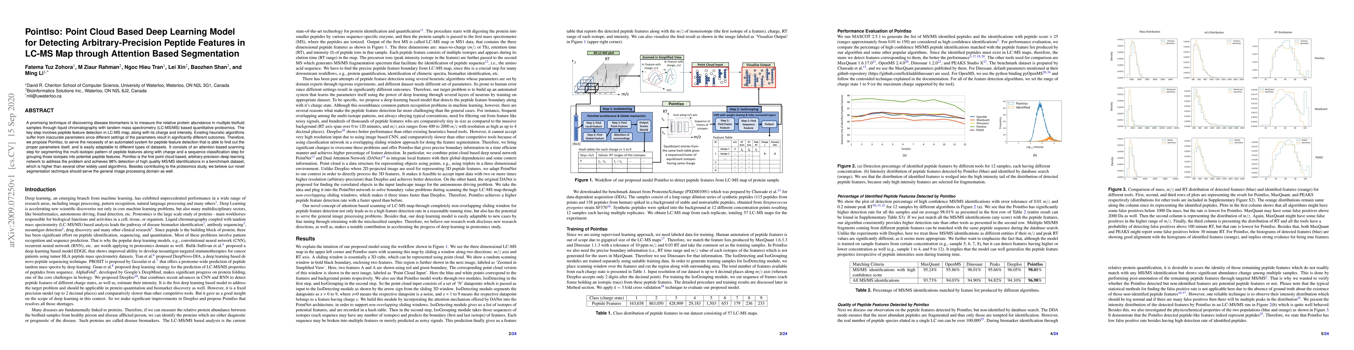 A new deep learning model called PointIso detects peptide features in LC-MS/MS data with high accuracy, outperforming existing algorithms, and has potential applications beyond proteomics.