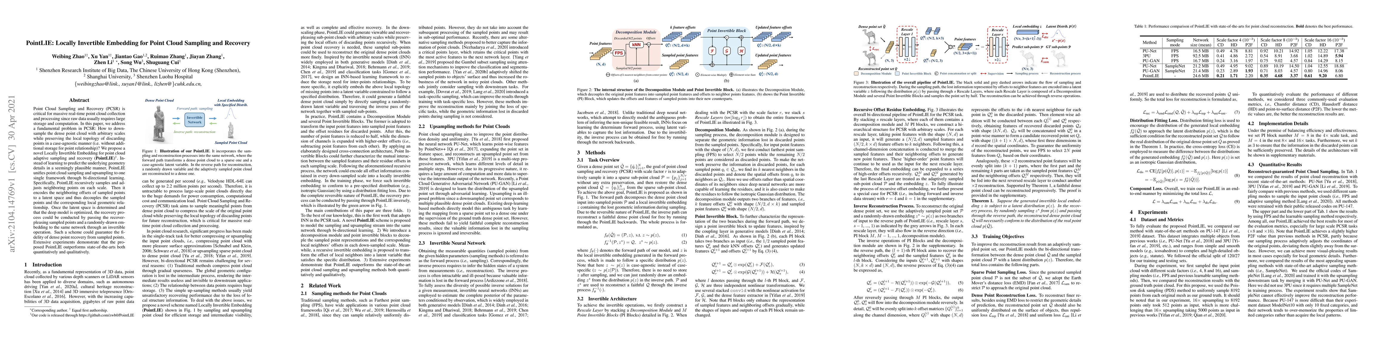 Point Cloud Sampling and Recovery (PCSR) is critical for massive real-time point cloud collection and processing since raw data usually requires large storage and computation. In this paper, we address a fundamental problem in PCSR: How to downsample the dense point cloud with arbitrary scales while preserving the local topology of discarding points in a case-agnostic manner (i.e. without additional storage for point relationship)? We propose a novel Locally Invertible Embedding for point cloud adaptive sampling and recovery (PointLIE). Instead of learning to predict the underlying geometry details in a seemingly plausible manner, PointLIE unifies point cloud sampling and upsampling to one single framework through bi-directional learning. Specifically, PointLIE recursively samples and adjusts neighboring points on each scale. Then it encodes the neighboring offsets of sampled points to a latent space and thus decouples the sampled points and the corresponding local geometric relationship. Once the latent space is determined and that the deep model is optimized, the recovery process could be conducted by passing the recover-pleasing sampled points and a randomly-drawn embedding to the same network through an invertible operation. Such a scheme could guarantee the fidelity of dense point recovery from sampled points. Extensive experiments demonstrate that the proposed PointLIE outperforms state-of-the-arts both quantitatively and qualitatively. Our code is released through https://github.com/zwb0/PointLIE.