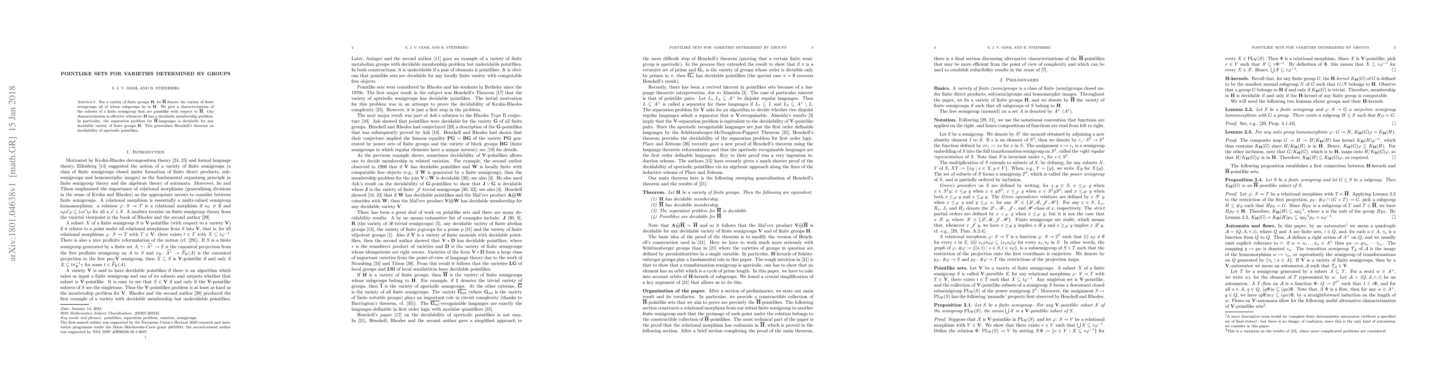 For a variety of finite groups $\mathbf H$, let $\overline{\mathbf H}$ denote the variety of finite semigroups all of whose subgroups lie in $\mathbf H$. We give a characterization of the subsets of a finite semigroup that are pointlike with respect to $\overline{\mathbf H}$. Our characterization is effective whenever $\mathbf H$ has a decidable membership problem. In particular, the separation problem for $\overline{\mathbf H}$-languages is decidable for any decidable variety of finite groups $\mathbf H$. This generalizes Henckell's theorem on decidability of aperiodic pointlikes.