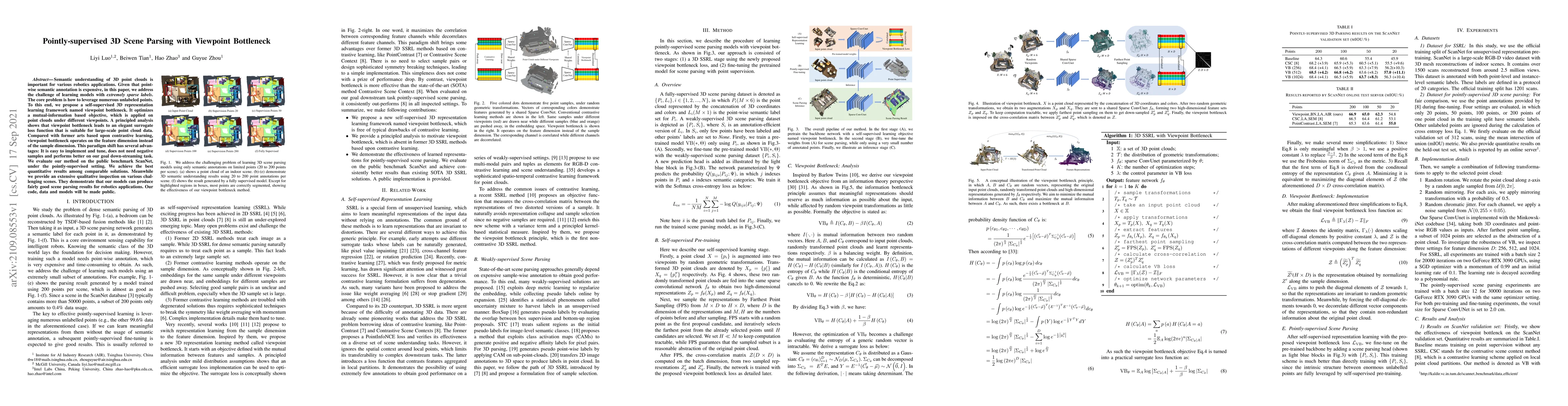 Researchers propose a new self-supervised 3D representation learning framework called viewpoint bottleneck, which achieves state-of-the-art results in point cloud scene parsing with sparse labels.
