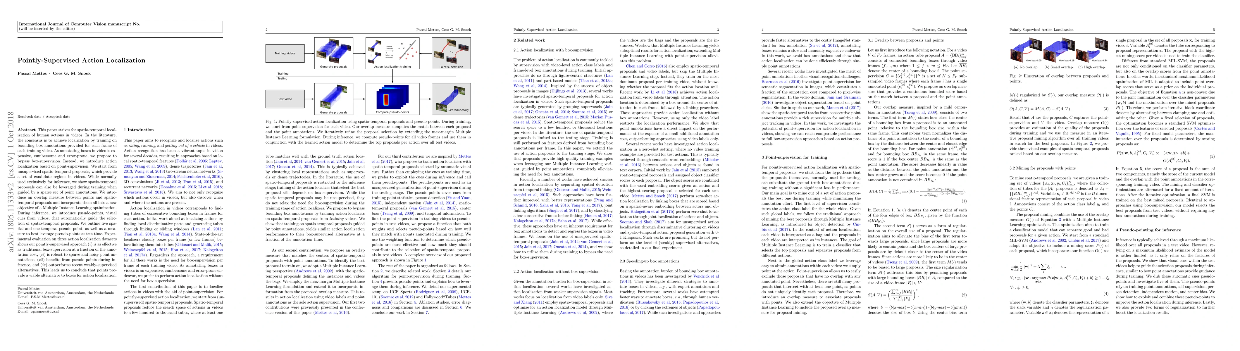 This paper proposes a pointly-supervised approach for spatio-temporal localization of human actions in videos, bypassing the costly and error-prone bounding box annotations by leveraging sparse point annotations and pseudo-points during inference, demonstrating comparable effectiveness to traditional methods with significantly lower annotation costs.