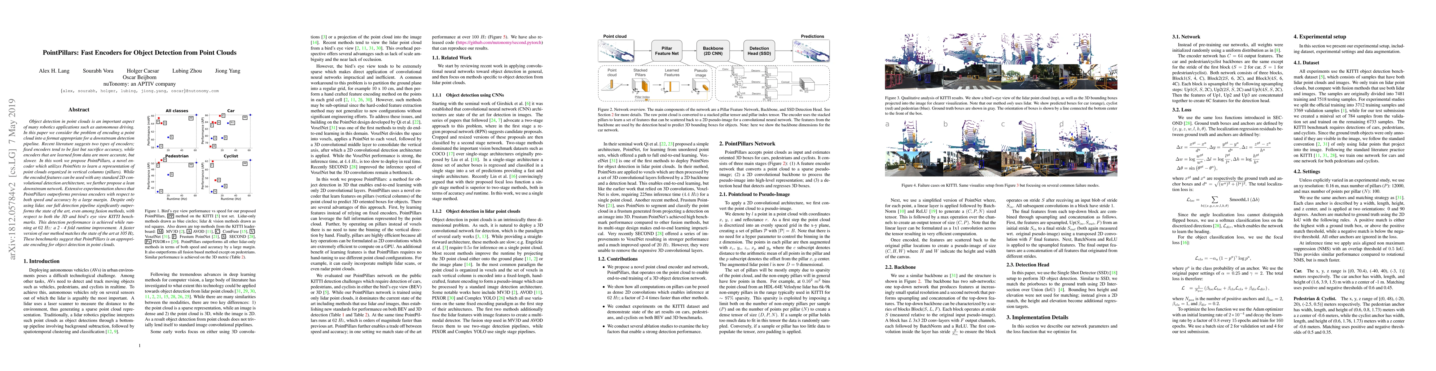 PointPillars proposes a novel encoder for object detection in point clouds that balances speed and accuracy, outperforming previous methods with significant runtime improvements.